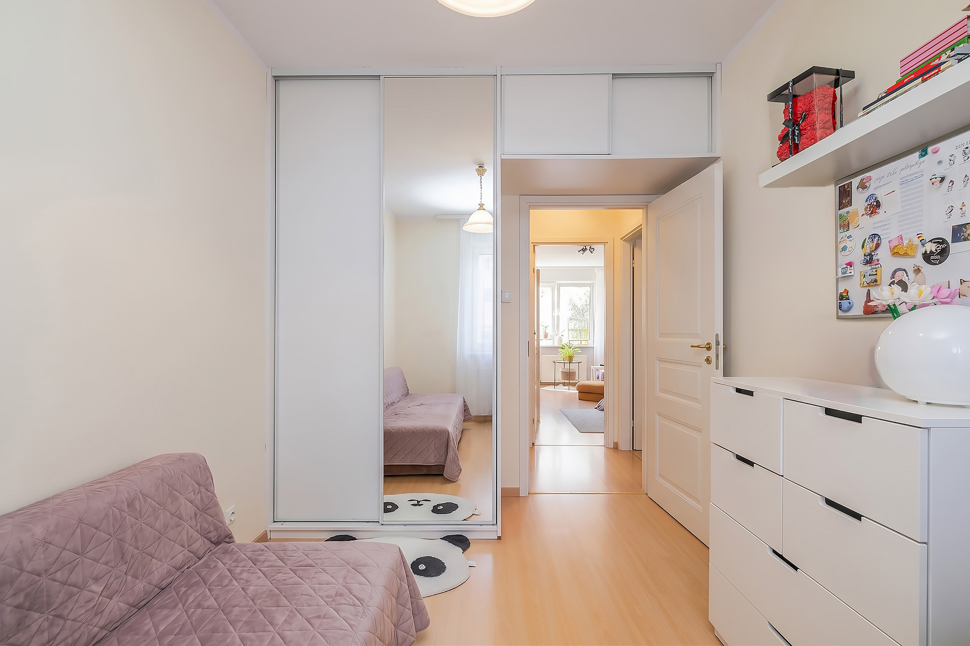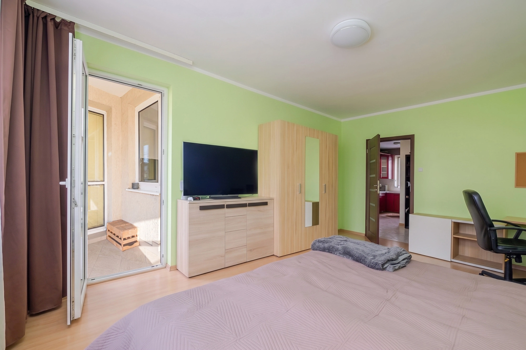 -2 sypialni (16,2 oraz 11,6 m2) z każdej z wyjście na balkon ( między pokojami ścianki działowe pozwalające na zmianę podziału pokoi )