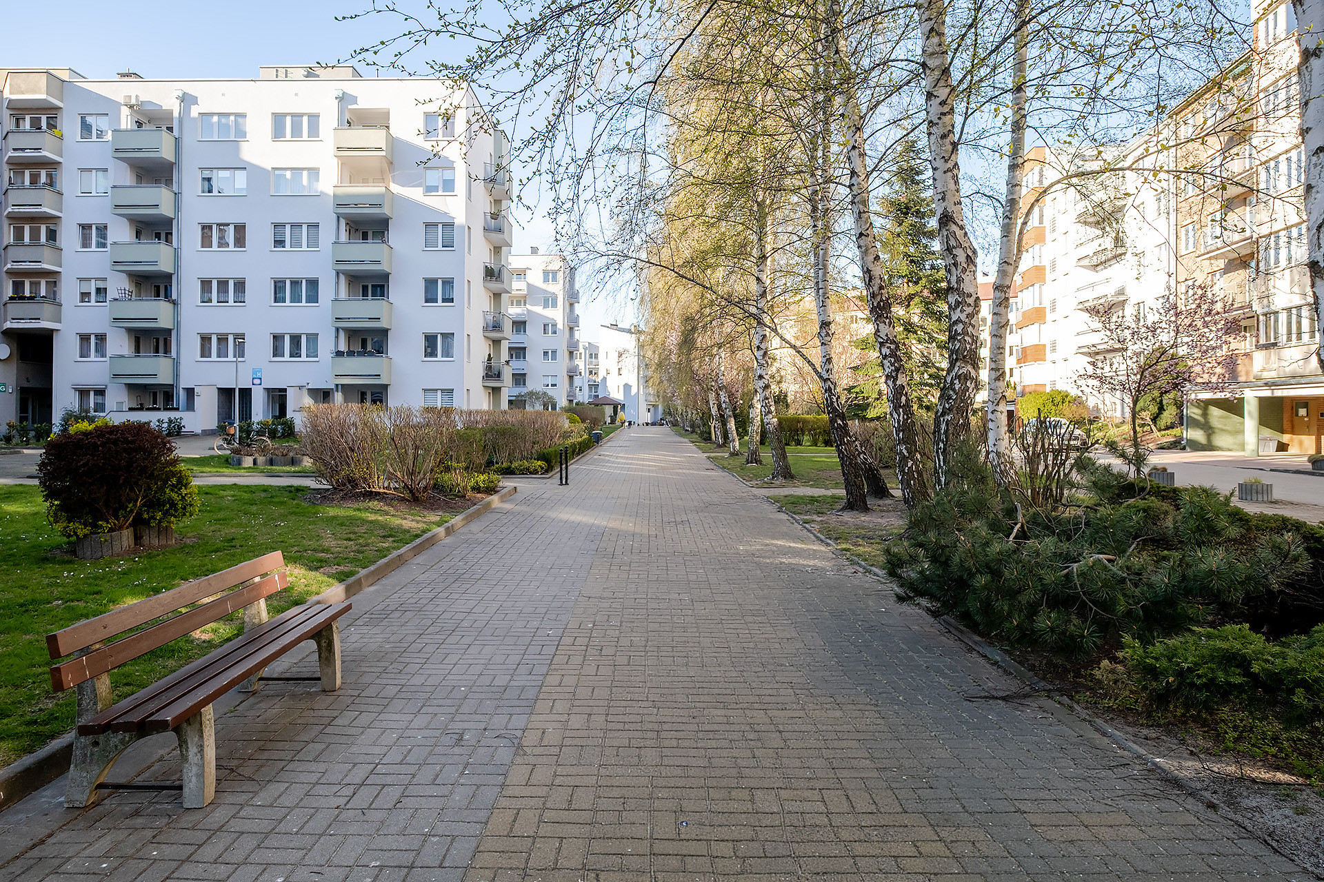 Budynek 5 piętrowy z 1997 roku w bardzo dobrym stanie jest częścią zamkniętego ogrodzonego osiedla. Duże zielone patio – porośnięte roślinnością z miejscami do odpoczynku na świeżym powietrzu tylko dla mieszkańców .