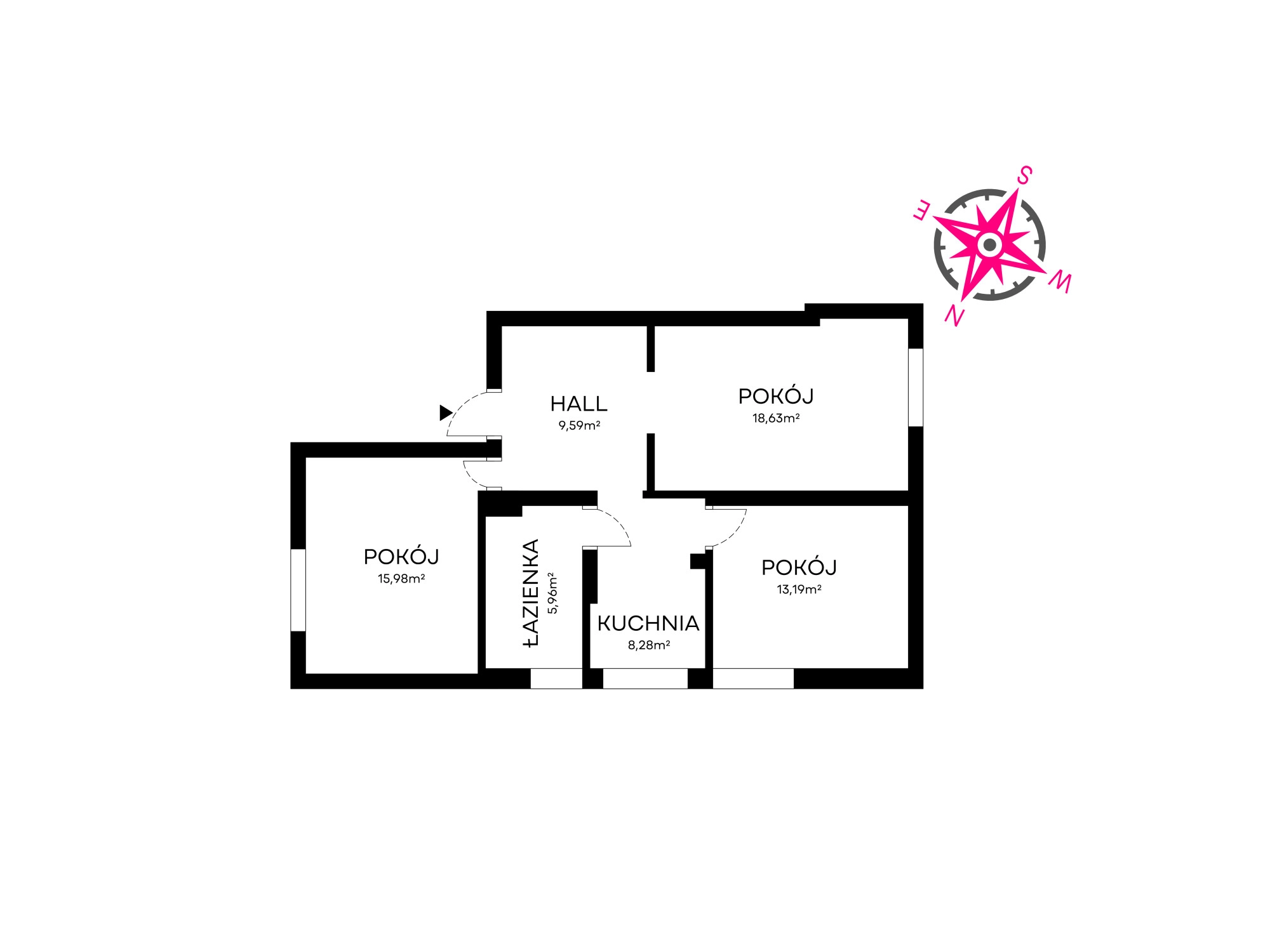 – 3 ustawne i duże pokoje , oddzielna jasna kuchnia, łazienka z oknem