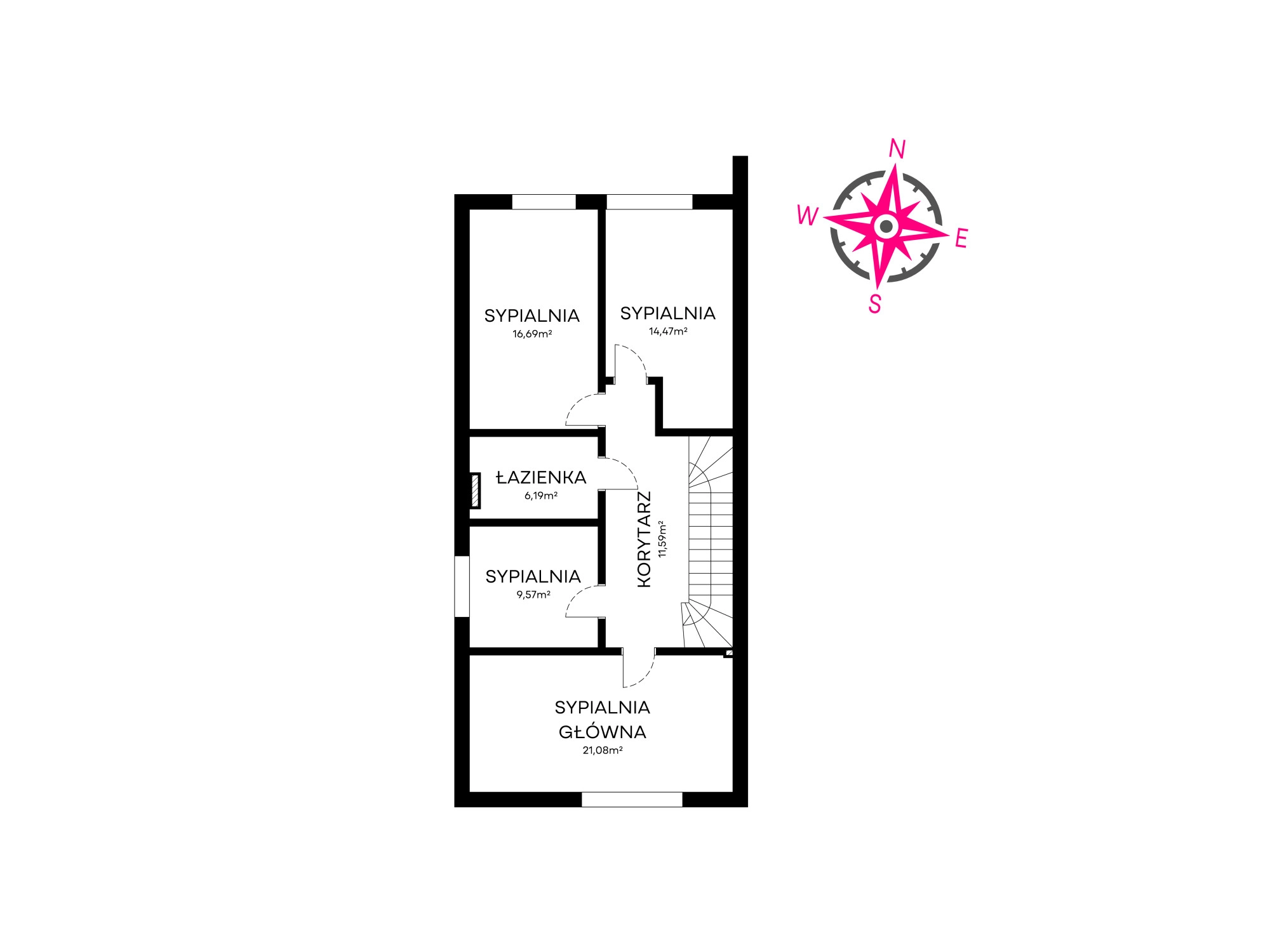 – Sypialnia główna o powierzchni 21,08 m²