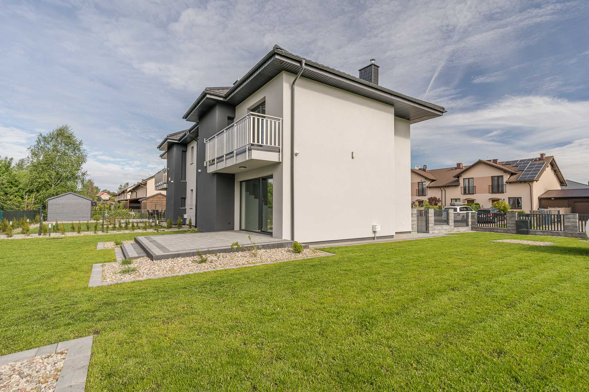 Zapraszam do zakupu nowego domu w Baninie, z nowocześnie zagospodarowanym ogrodem, w zabudowie bliźniaczej z 4 pokojami na piętrze (bez skosów).
