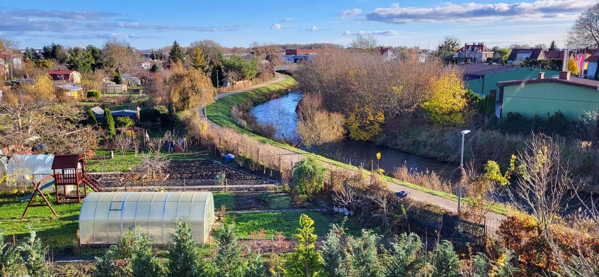 Dom położony jest na cichym osiedlu domów jednorodzinnych przy ul. Żeromskiego w Pruszczu Gdańskim. Z okna widać zielone ogródki działkowe oraz rzekę Radunie. Budynek położony na końcu ulicy co zapewnia ciszę i spokój.