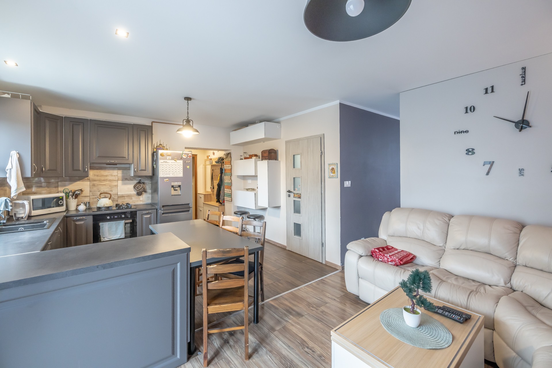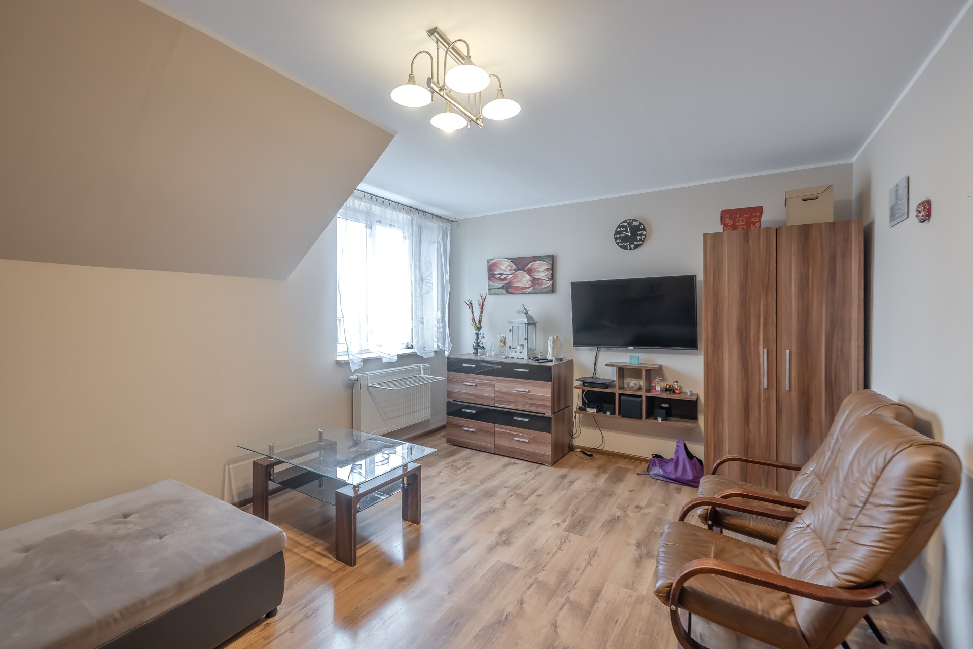 – salon z kuchnią 22 m2 z wyjściem na ogród