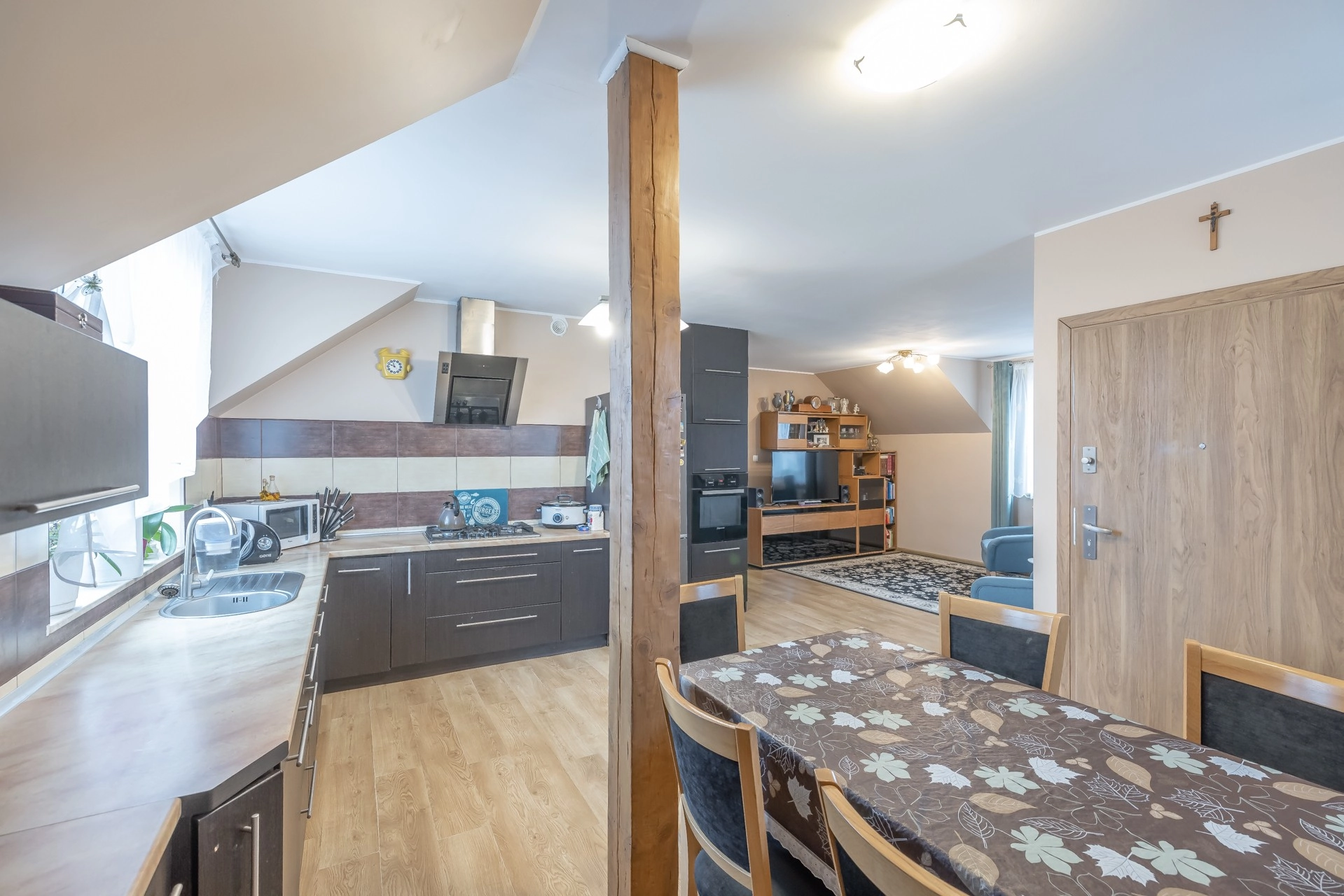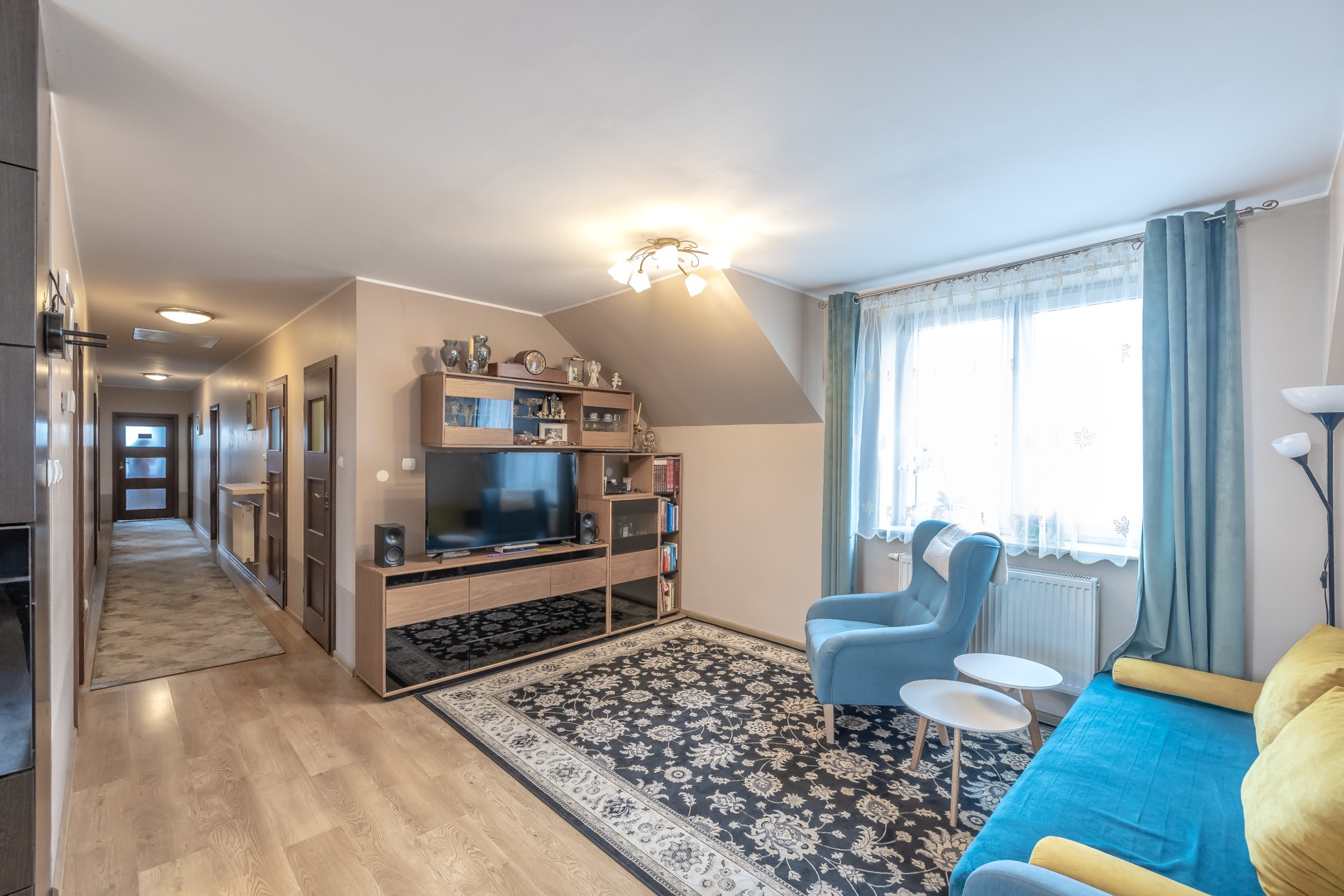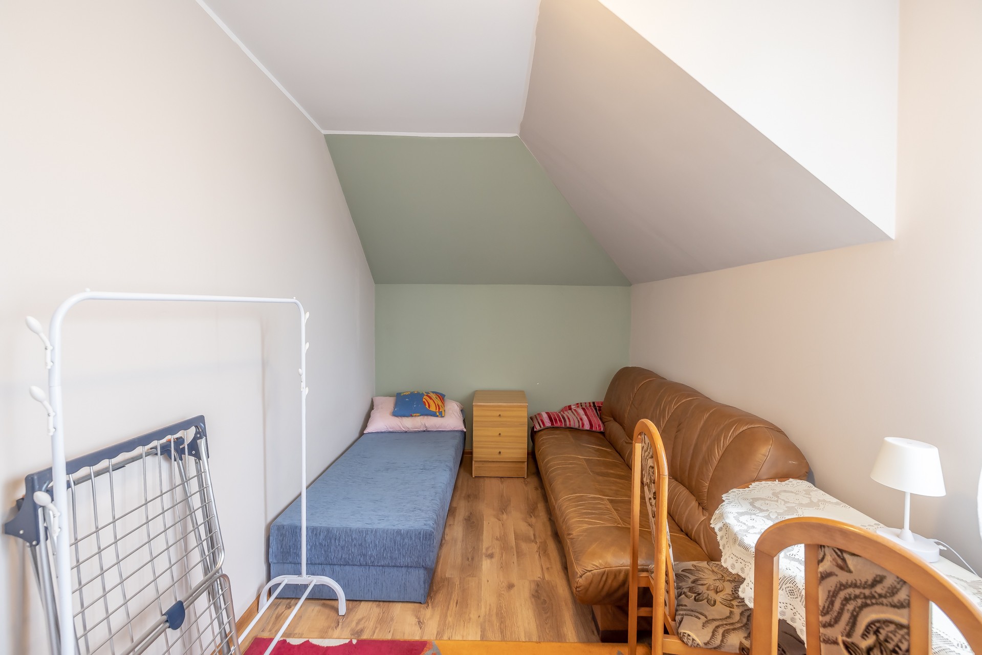 – pomieszczenie około 100 m2, w najwyższym punkcie 170 cm, idealne do przechowywania rzeczy, docieplone wełną 30 cm