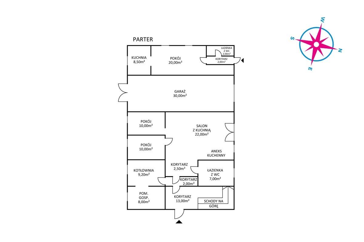 – 3x korytarz (2,5 m2 / 2 m2 / 13 m2)