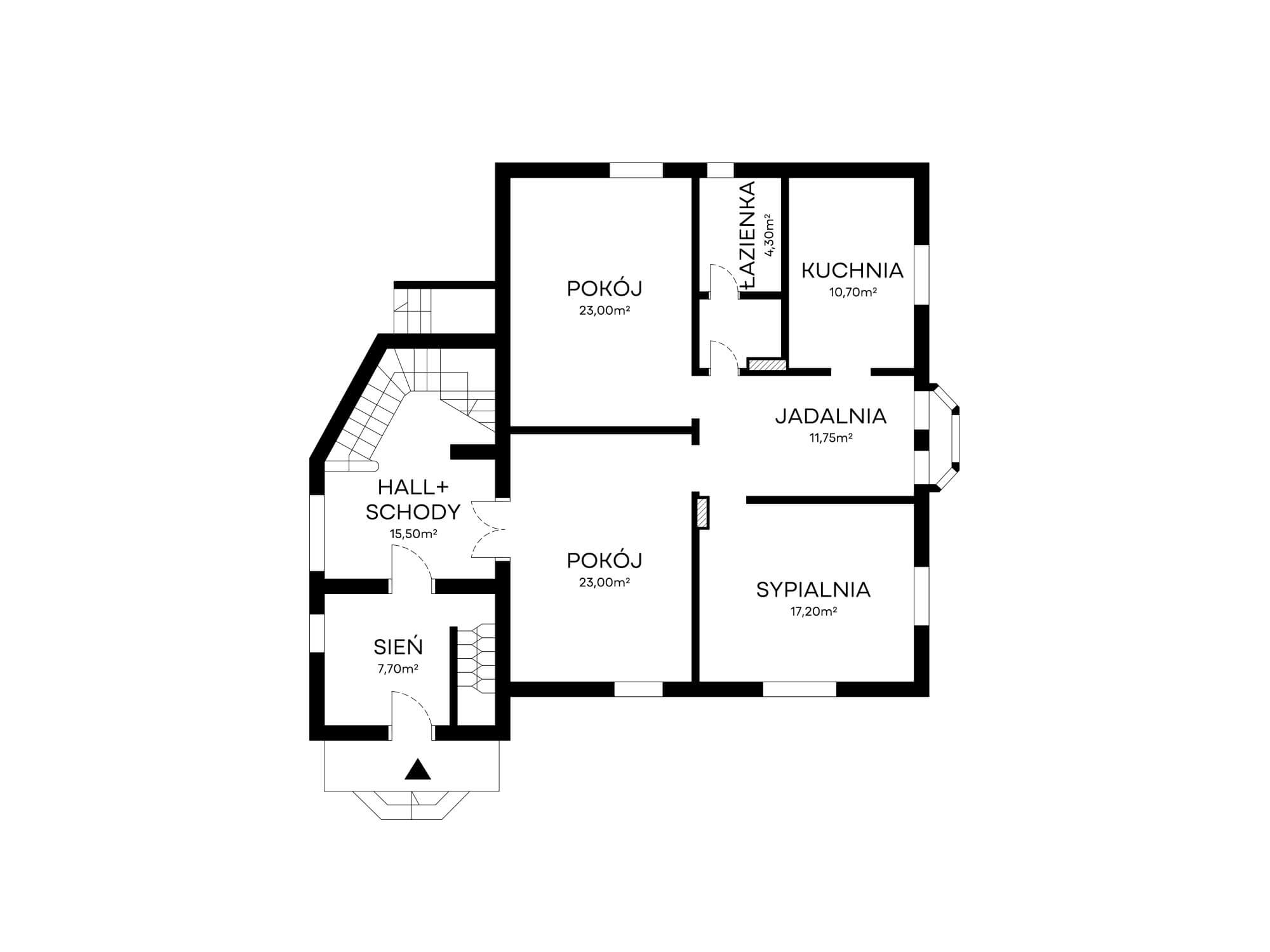 Na parterze istnieje możliwość wydzielenia 3 niezależnych pokoi, jadalni, kuchni oraz łazienki.