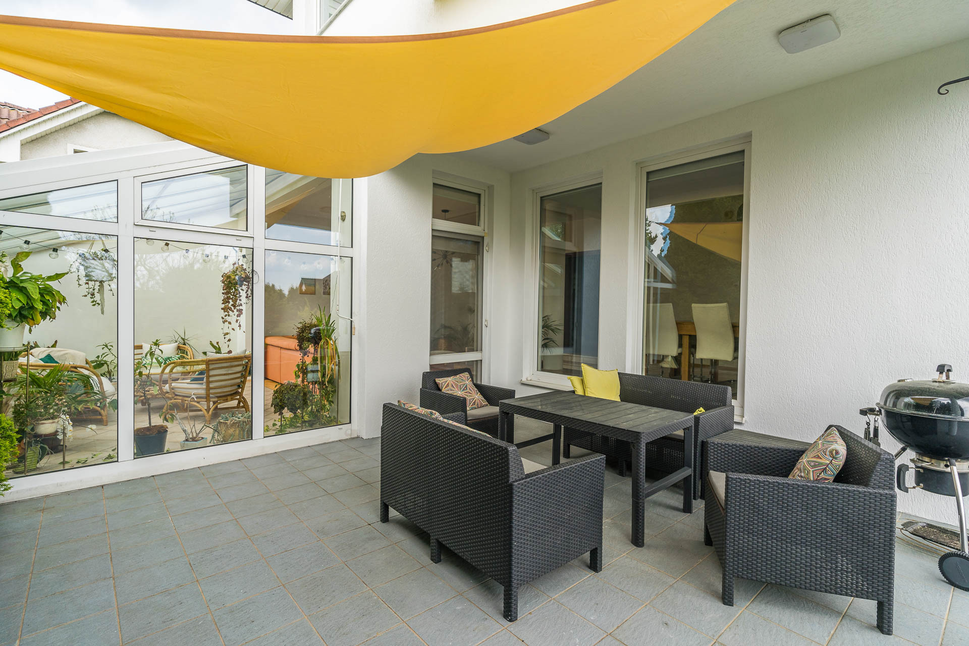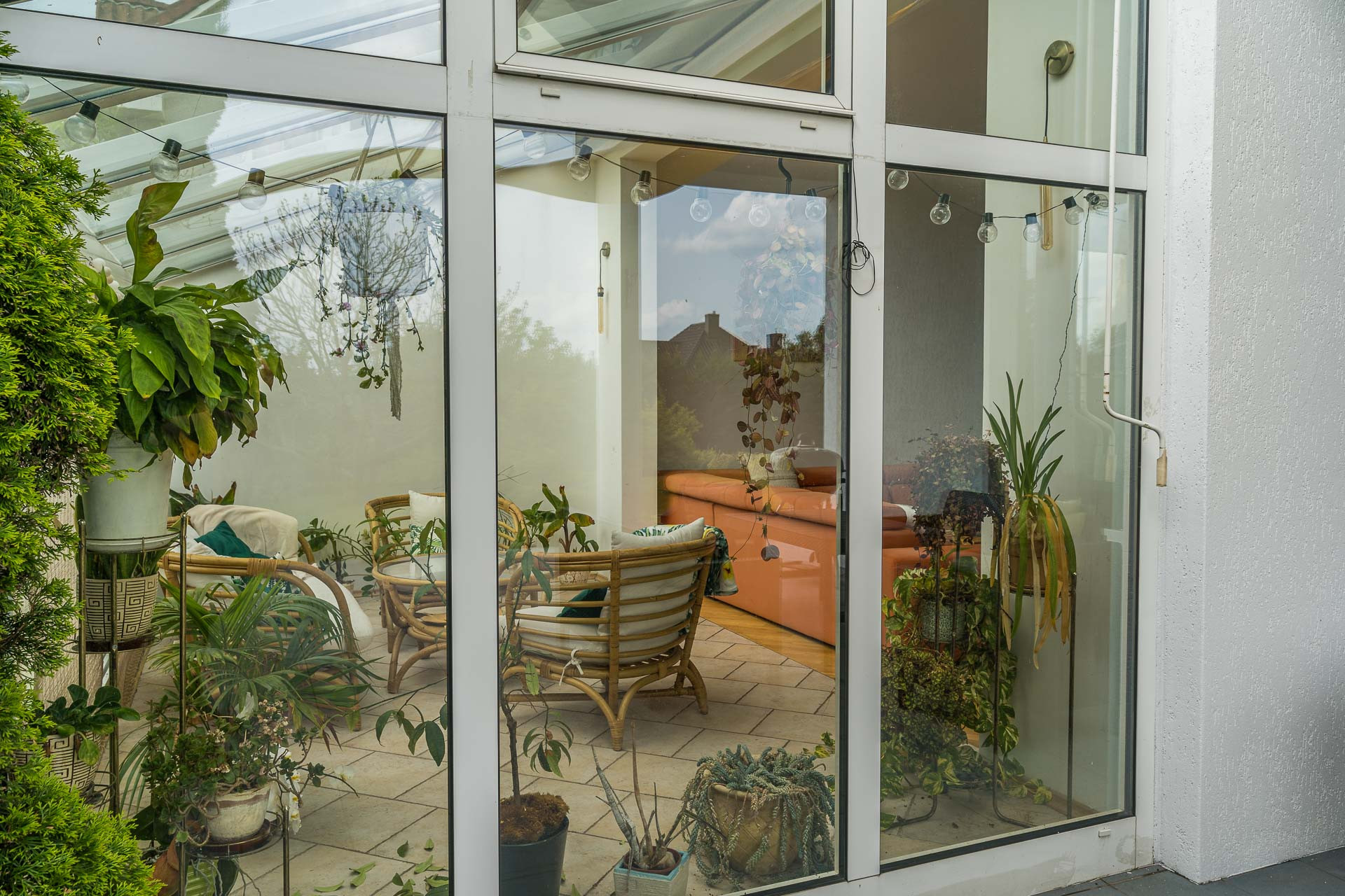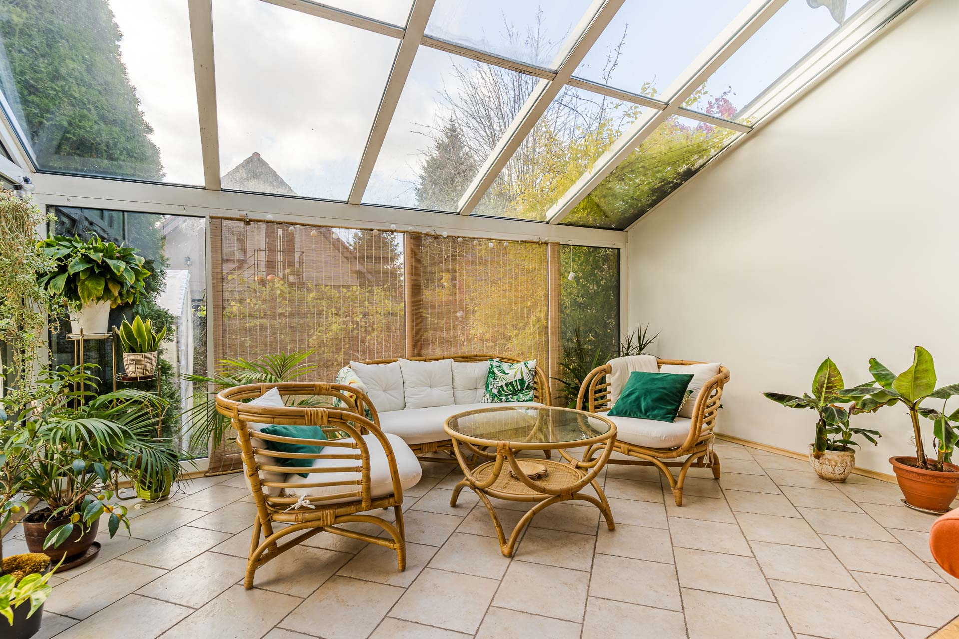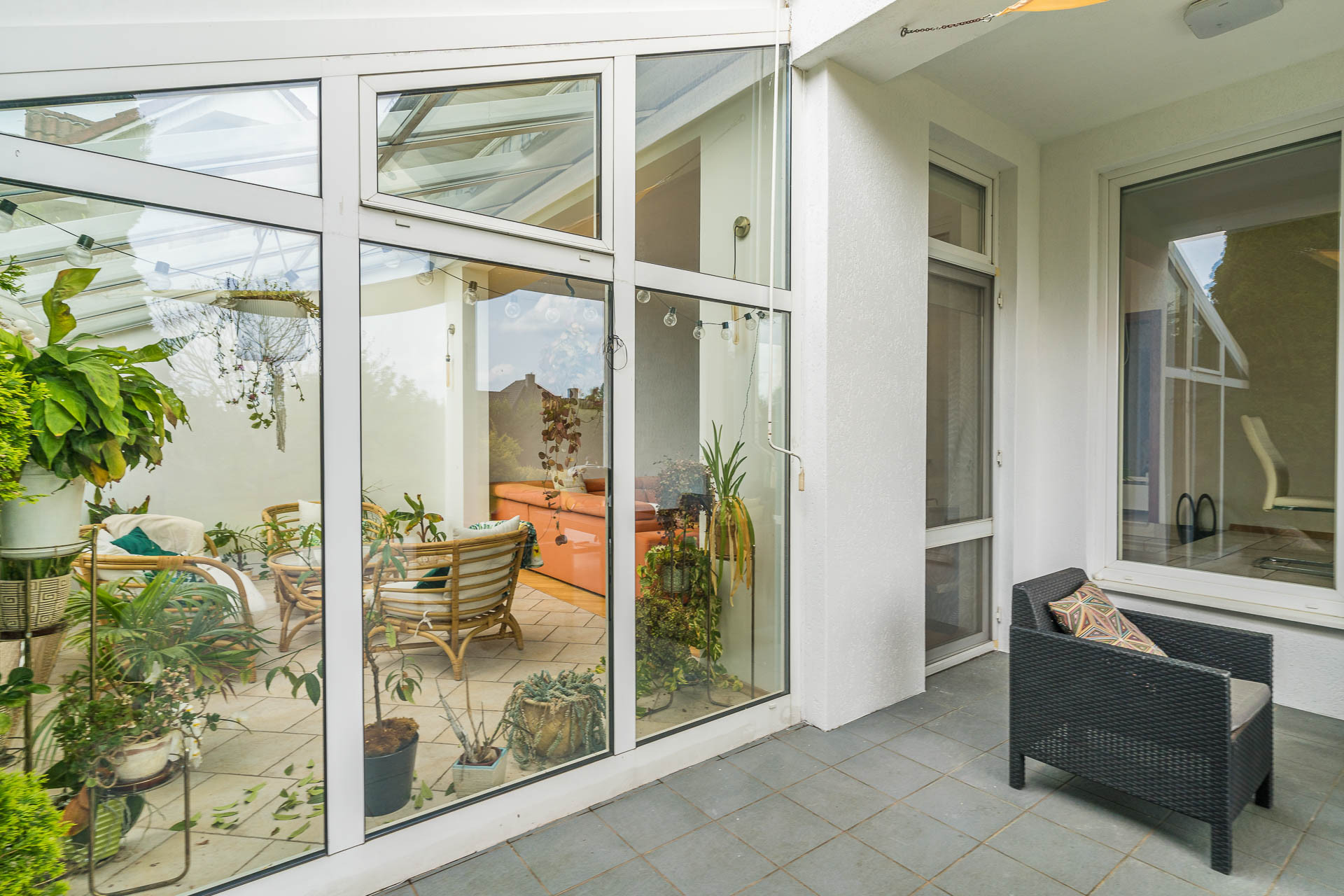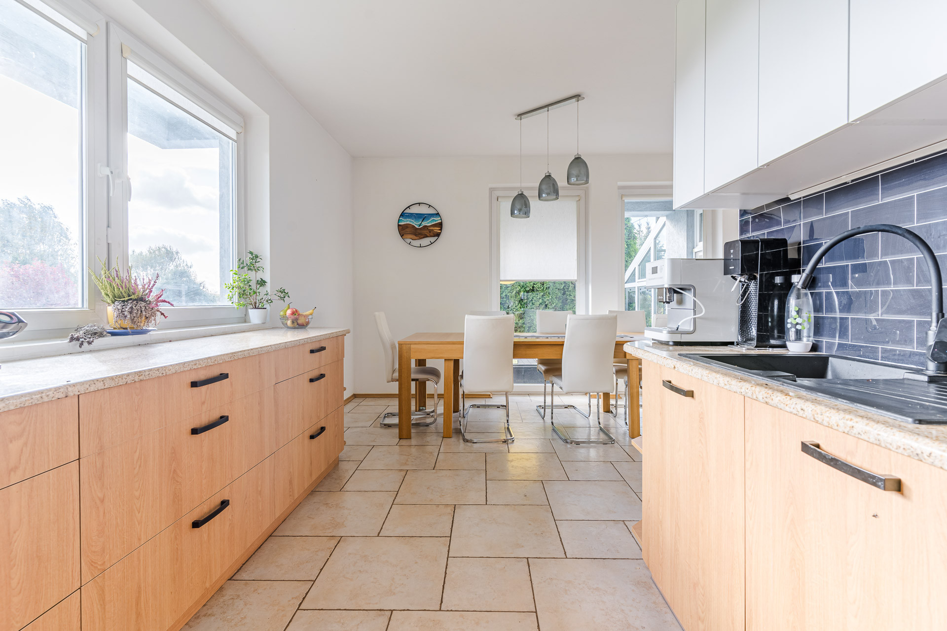 – przestronny salon z kominkiem i jadalnią oraz wyjściem na taras i zimowy ogród