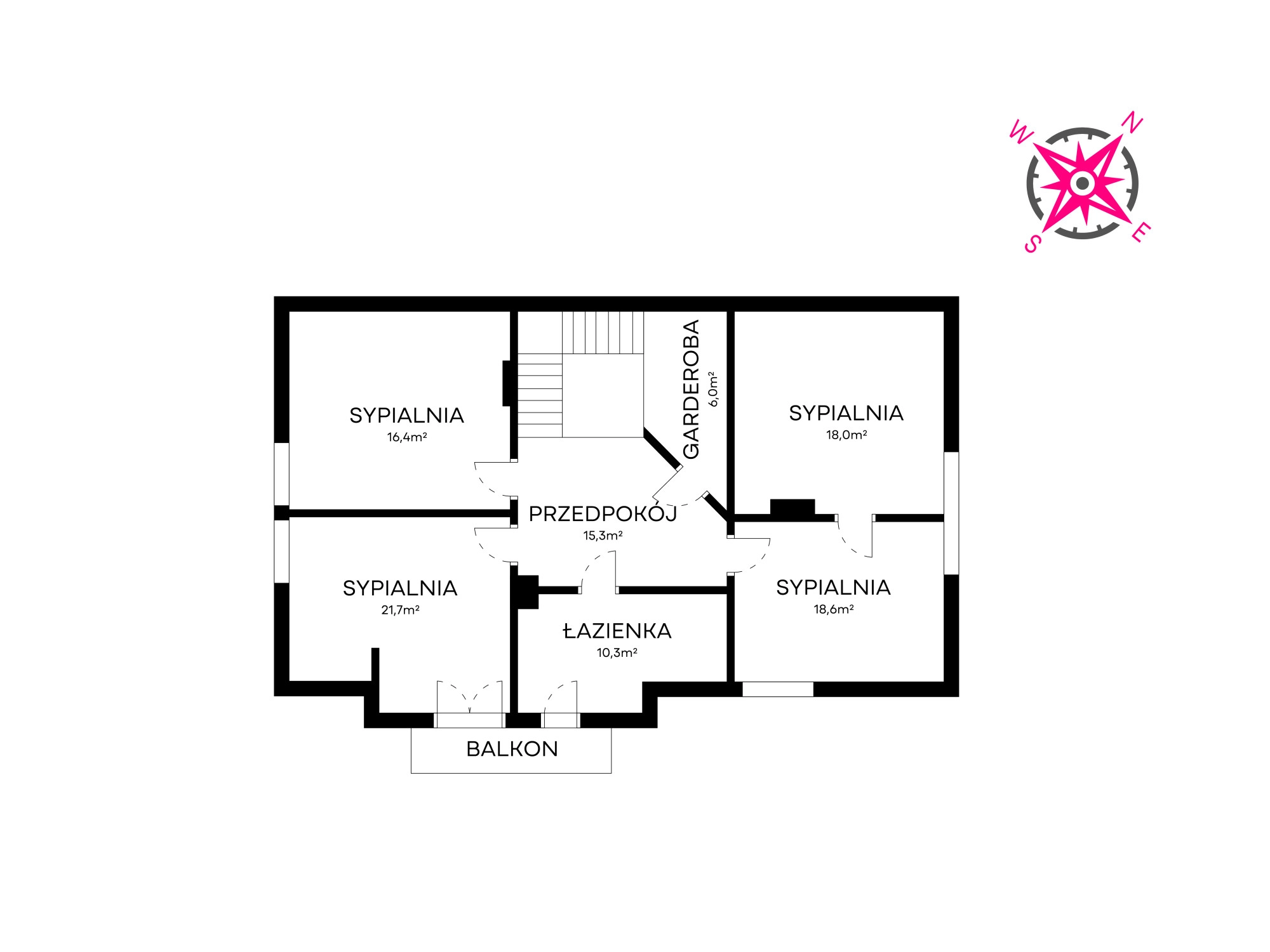 – cztery sypialnie w tym jedna z wyjściem na balkon