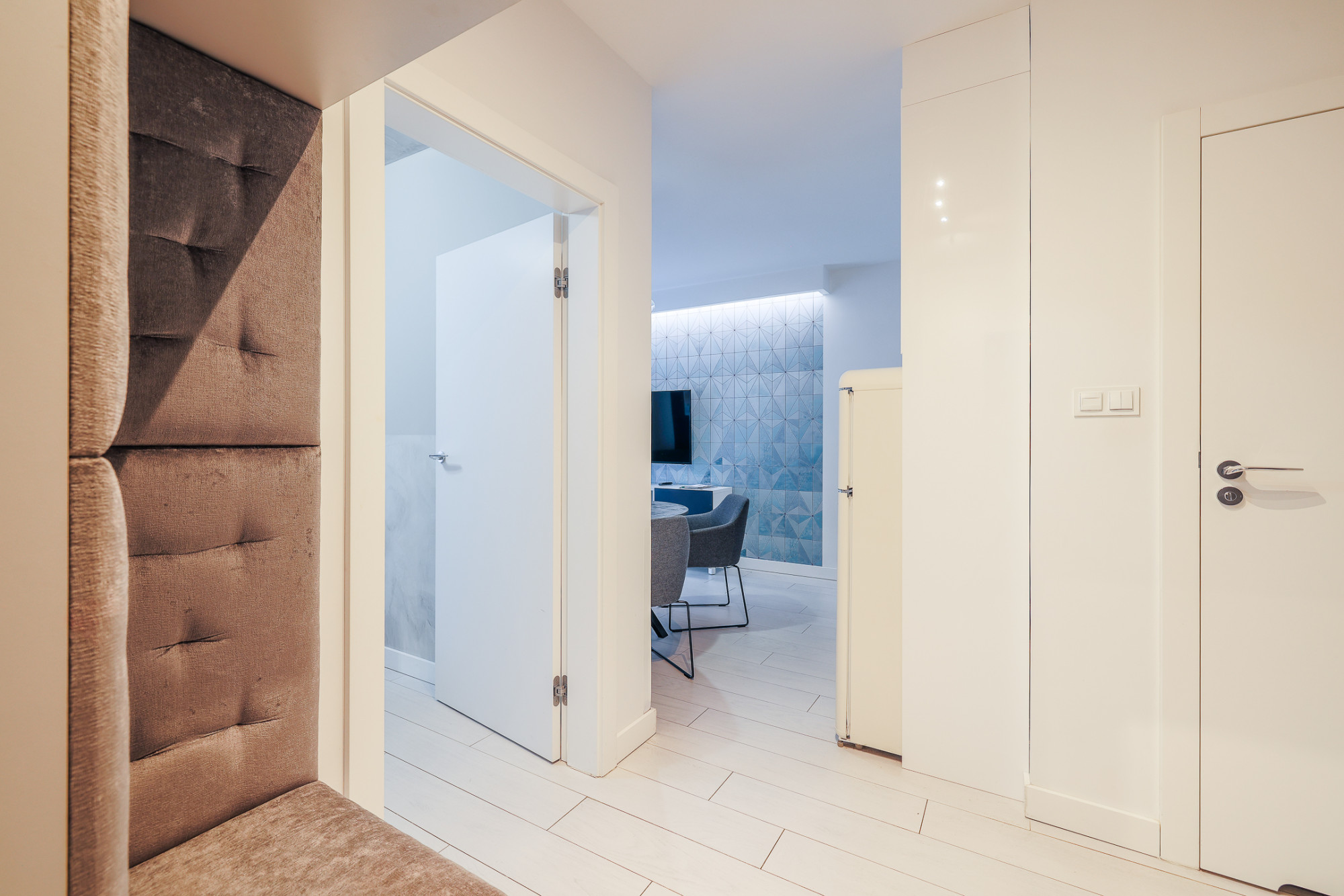 Układ: pokój z aneksem kuchennym, łazienka, korytarz