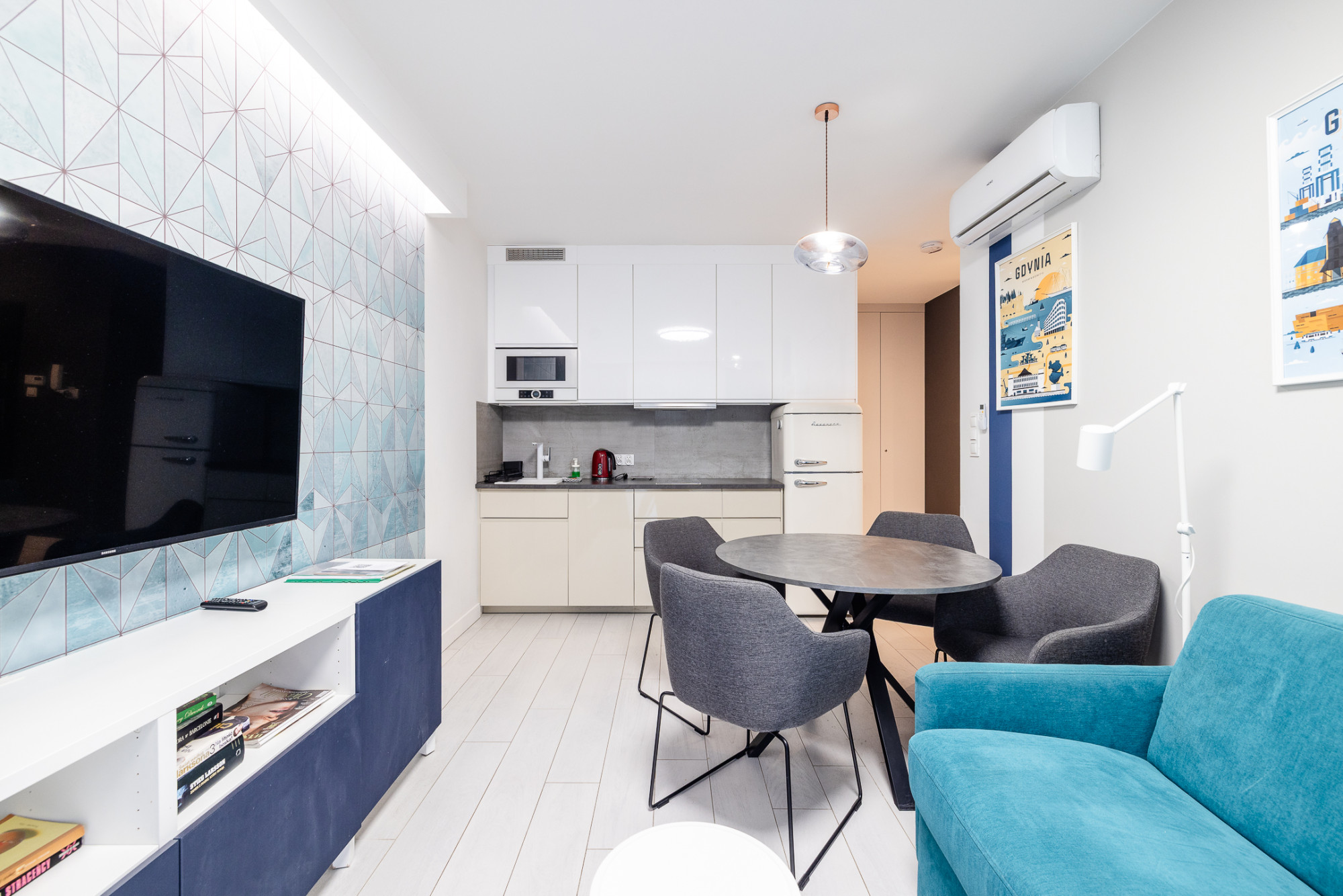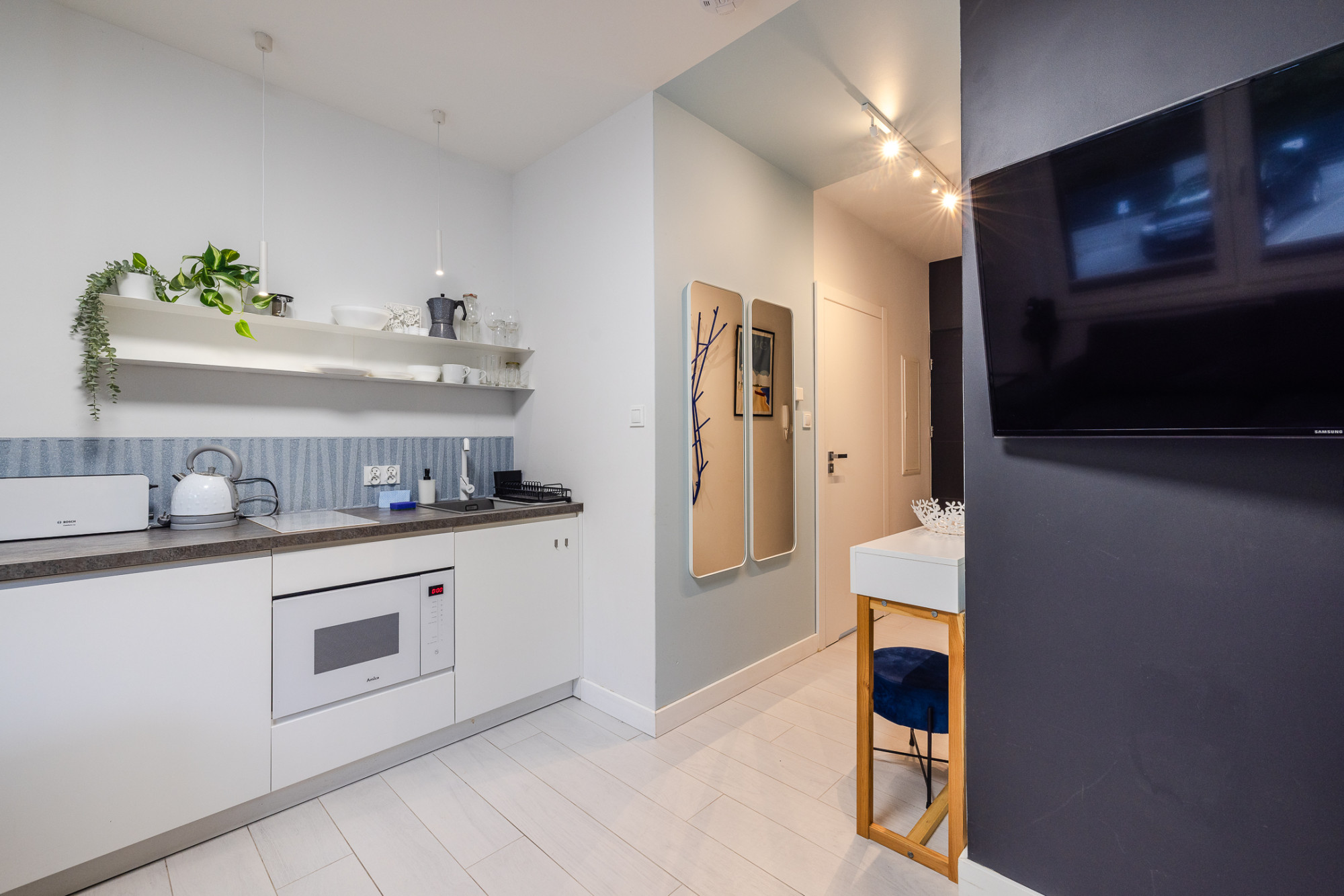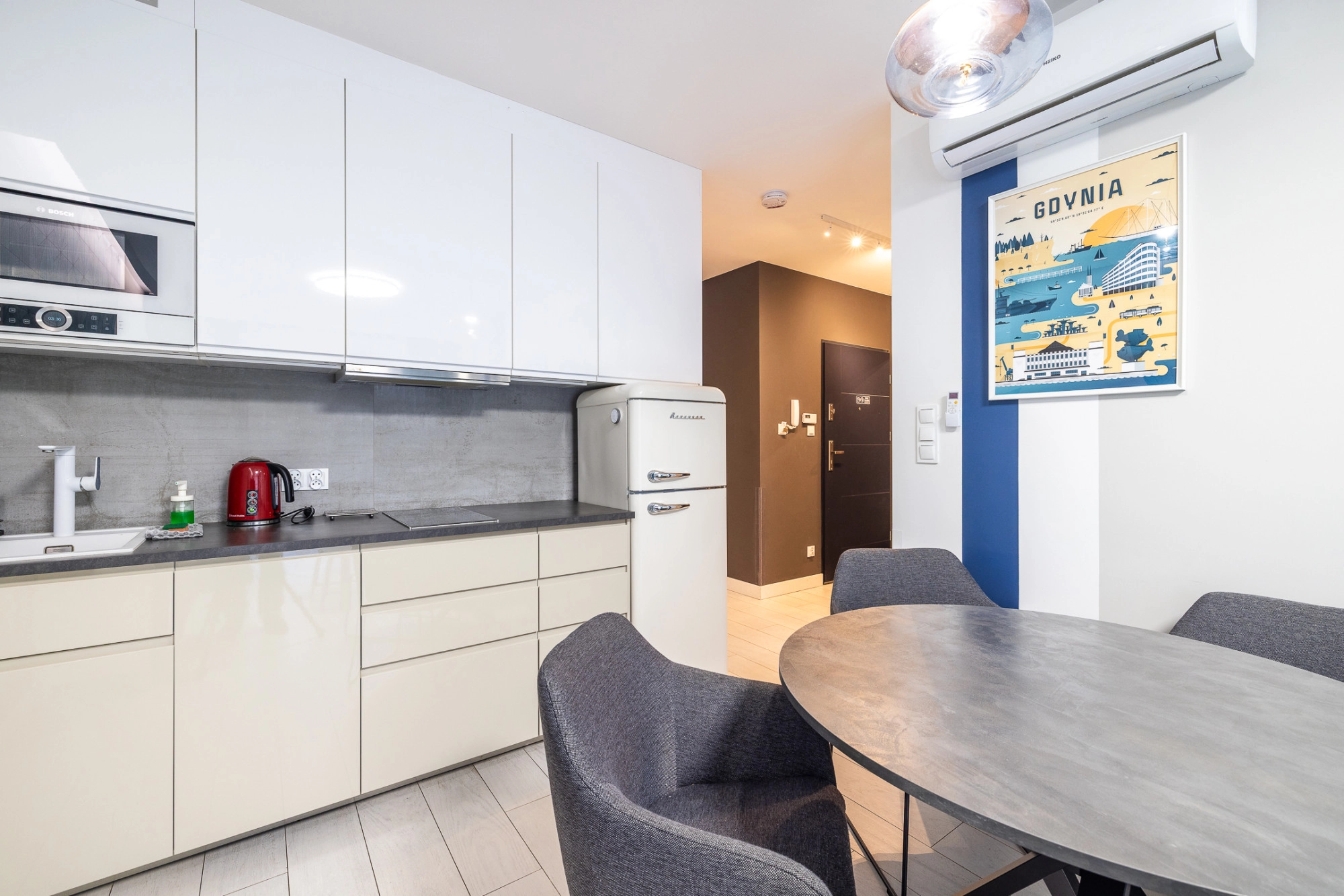 Wyposażenie: lodówka, płyta indukcyjna, mikrofalówka, zmywarka, pralka, RTV