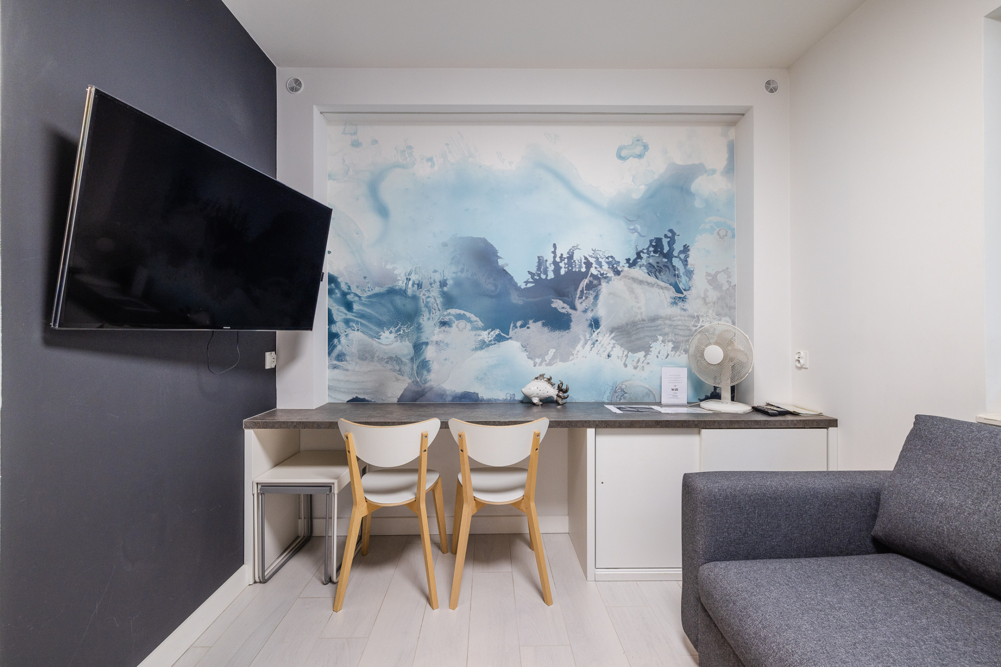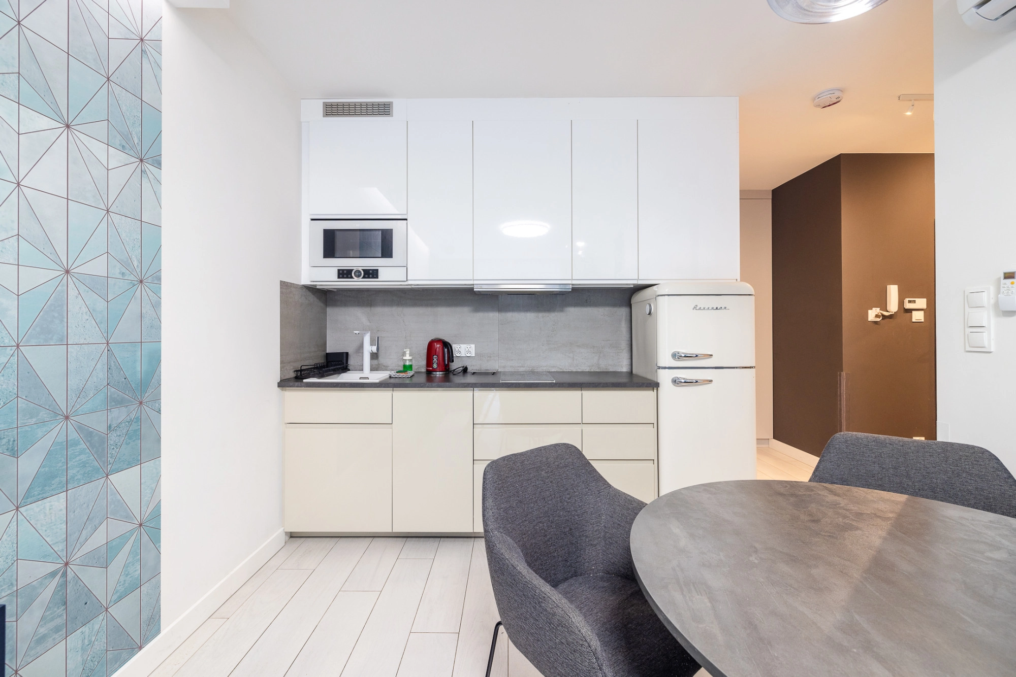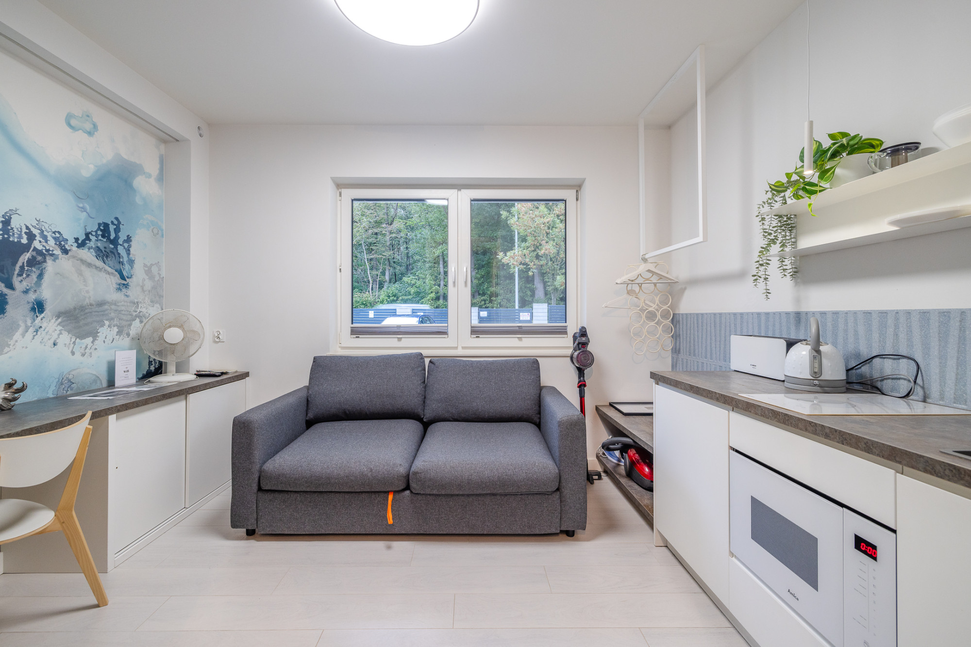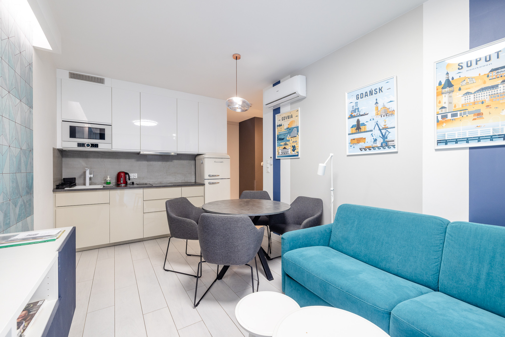 Wyposażenie: lodówka, płyta indukcyjna, mikrofalówka, zmywarka, pralka, RTV