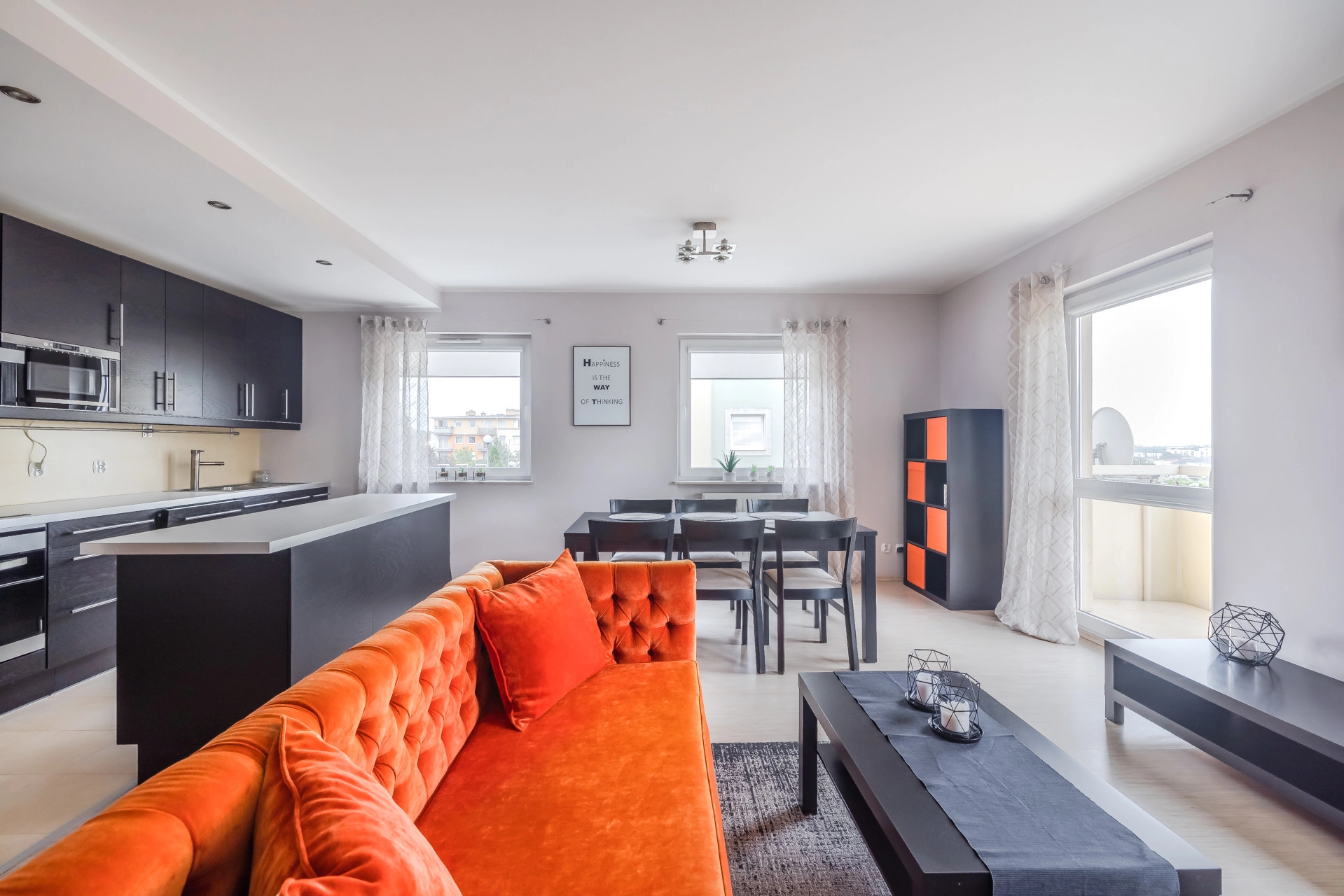 – Salonu z aneksem kuchennym oraz wyjściem na balkon