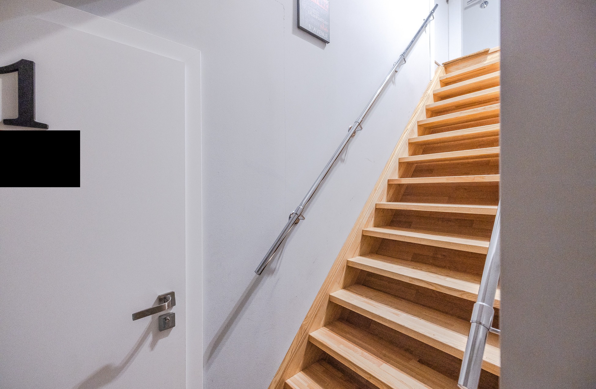 – Możliwość usunięcia ścianki znajdującej się przy schodach i stworzenie otwartej przestrzeni (jednego mieszkania, oddzielnych pokoi),