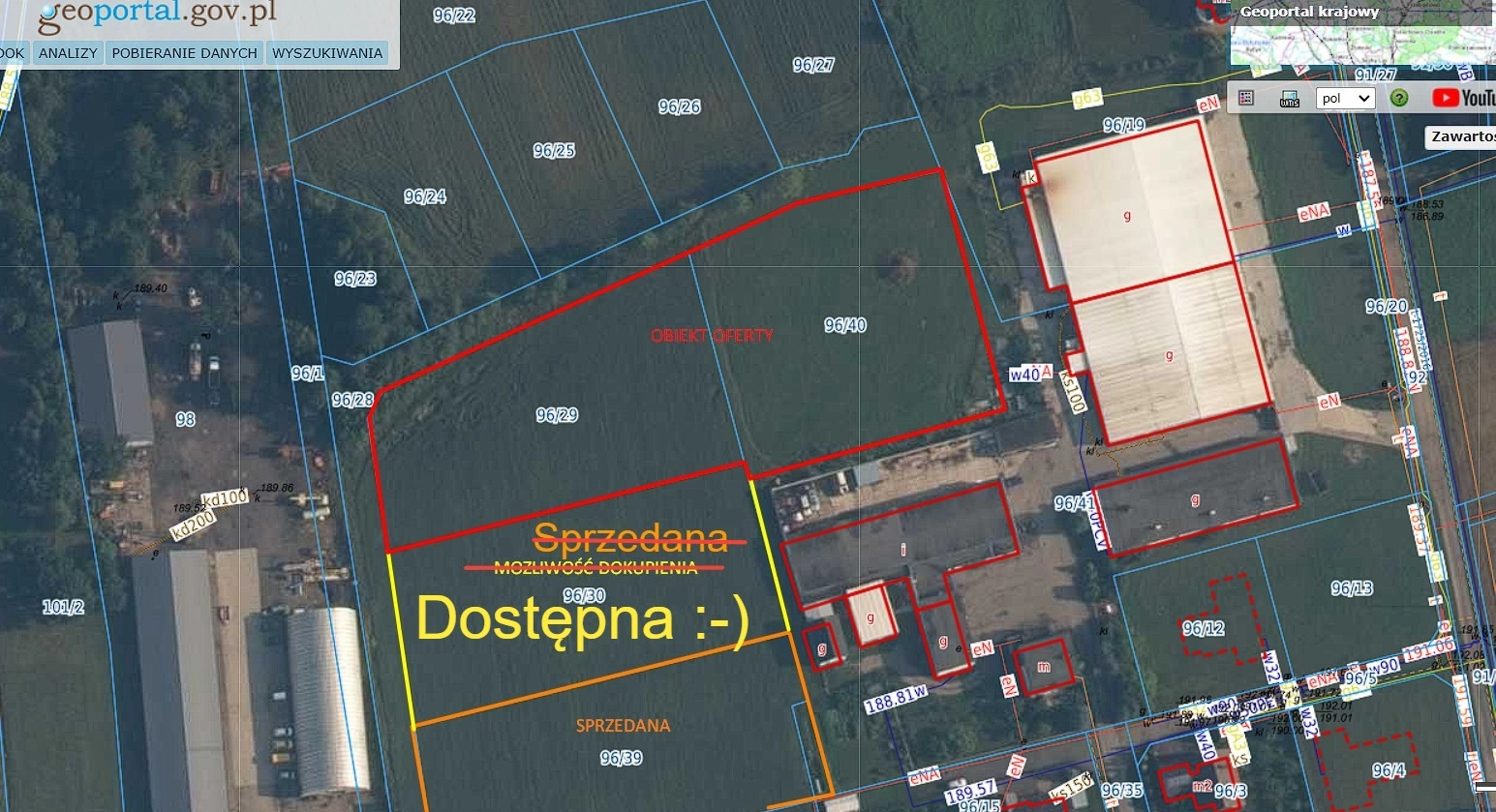 Istnieje możliwość dokupienia sąsiedniej działki 96/30 o powierzchni 3165m2.