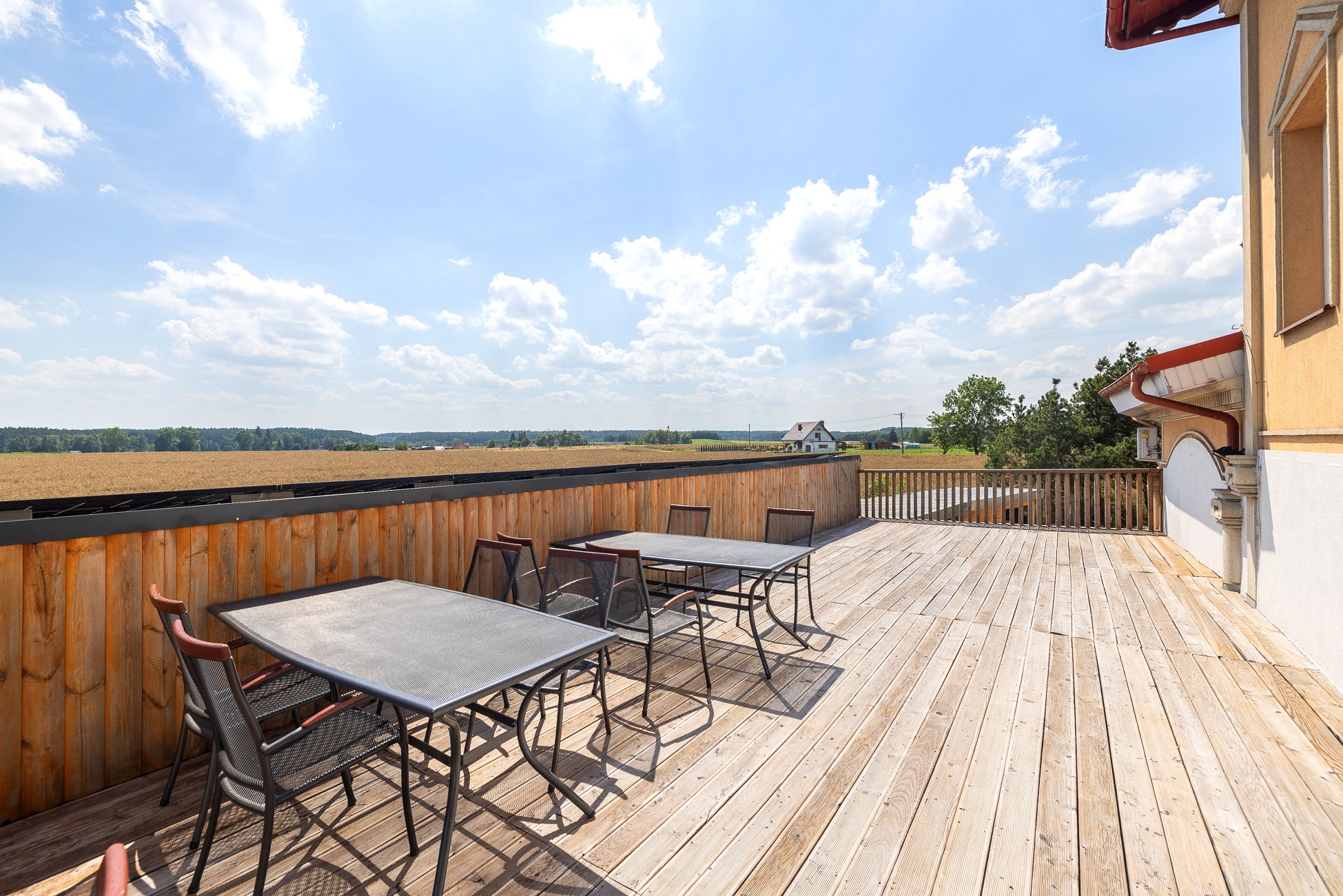 – Na półpiętrze wyjście na pięknie zlokalizowany zaciszny drewniany taras