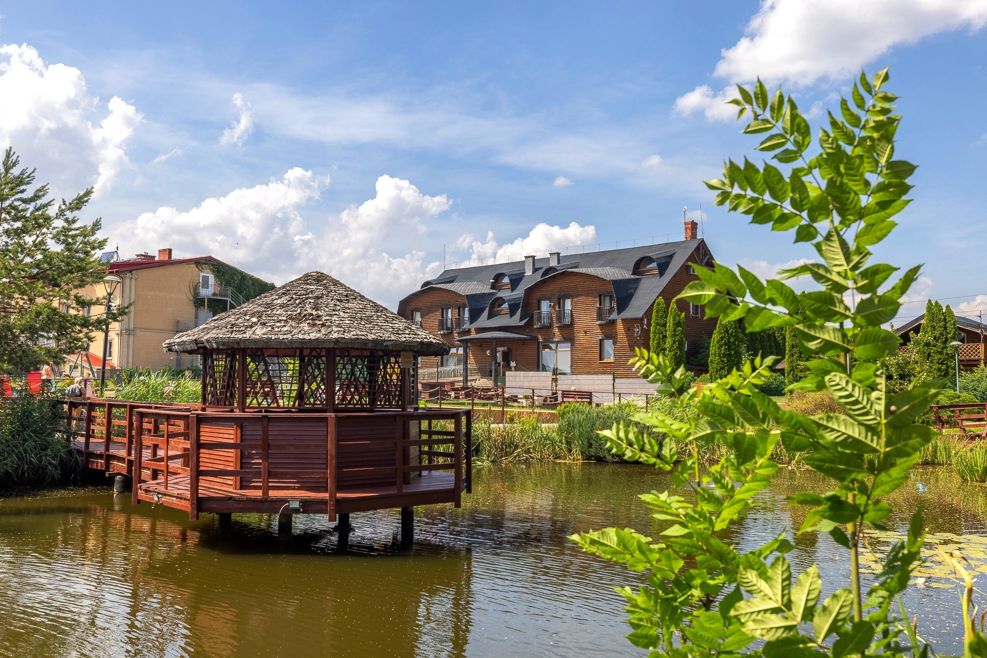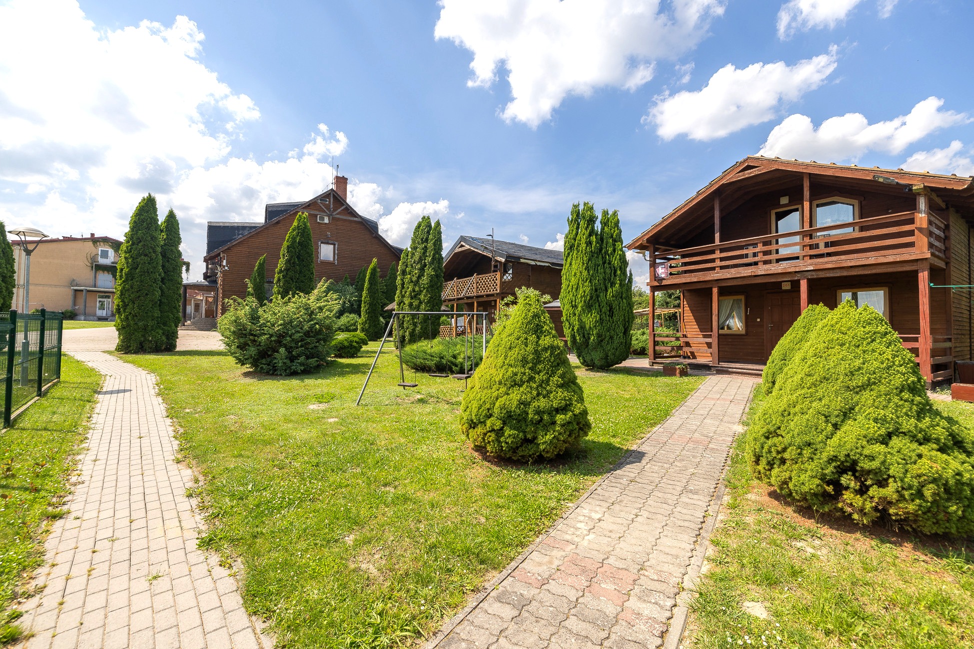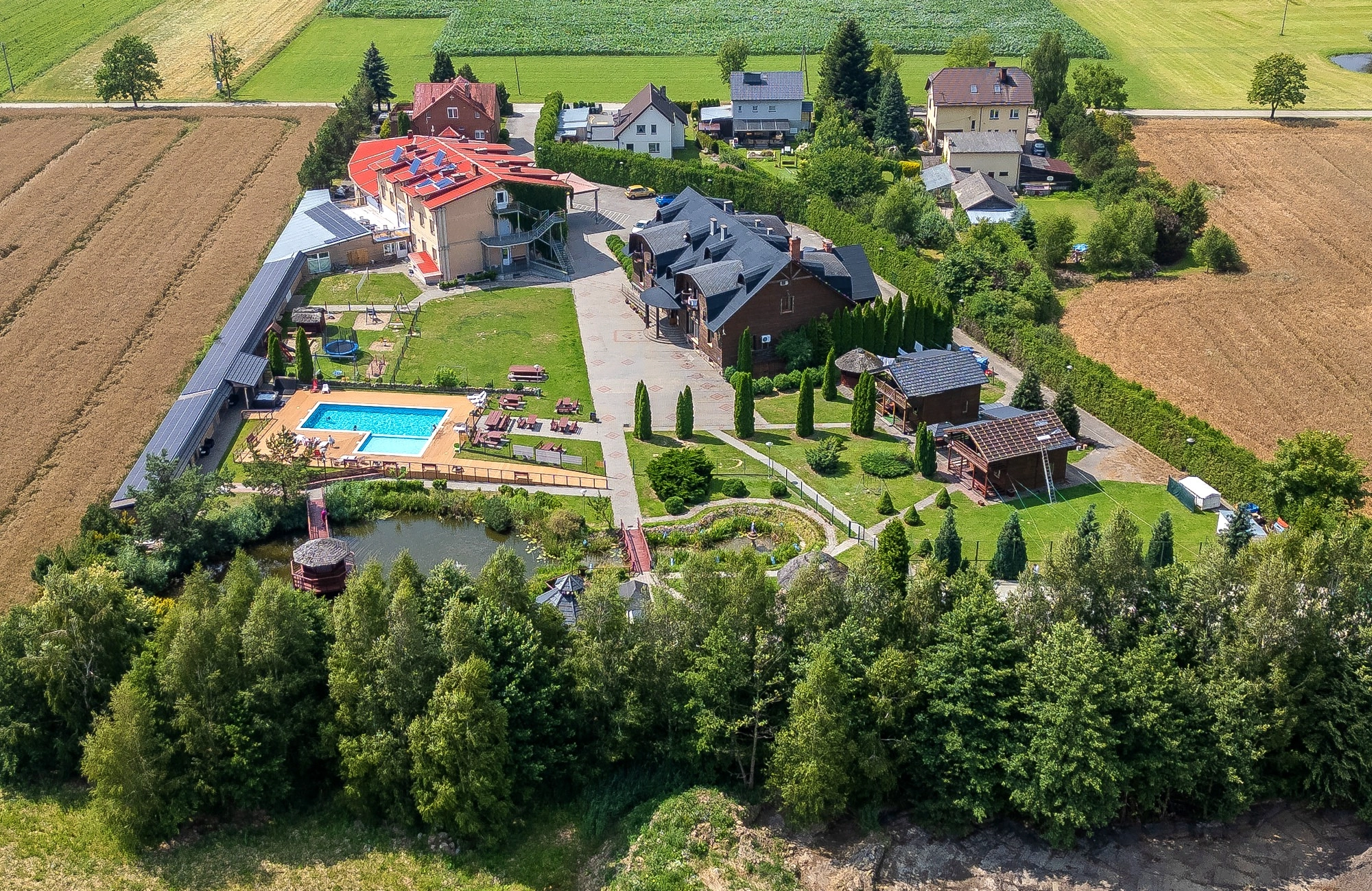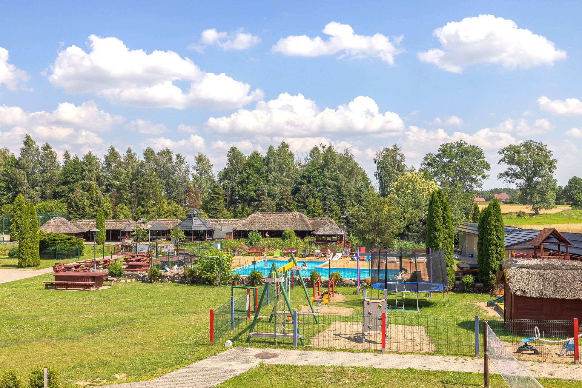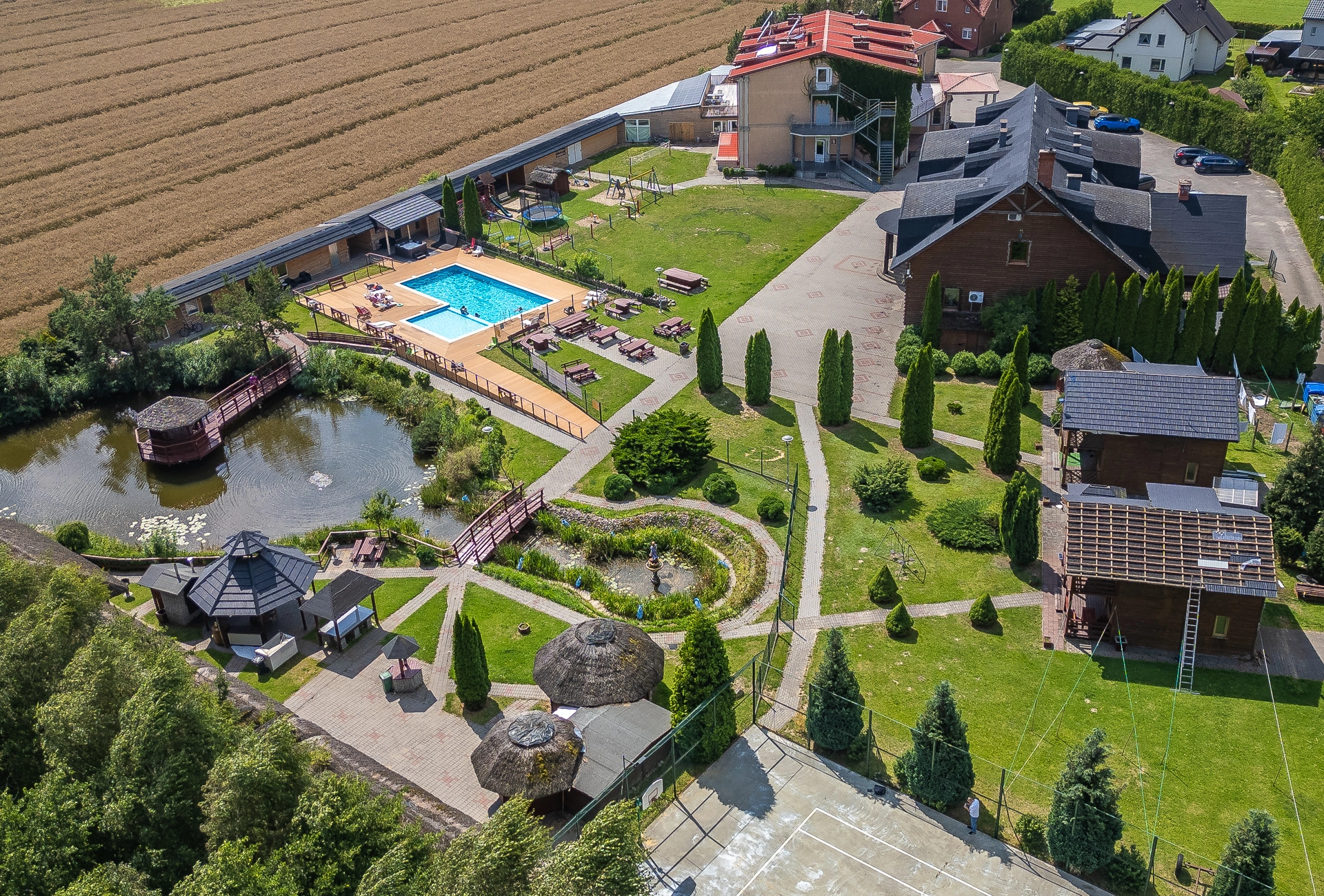 Na całość kompleksu składają się 3 budynki hotelowe, 2 domki pokryte strzechą, basen, boisko wielofunkcyjne, sauna oraz wiaty grillowe