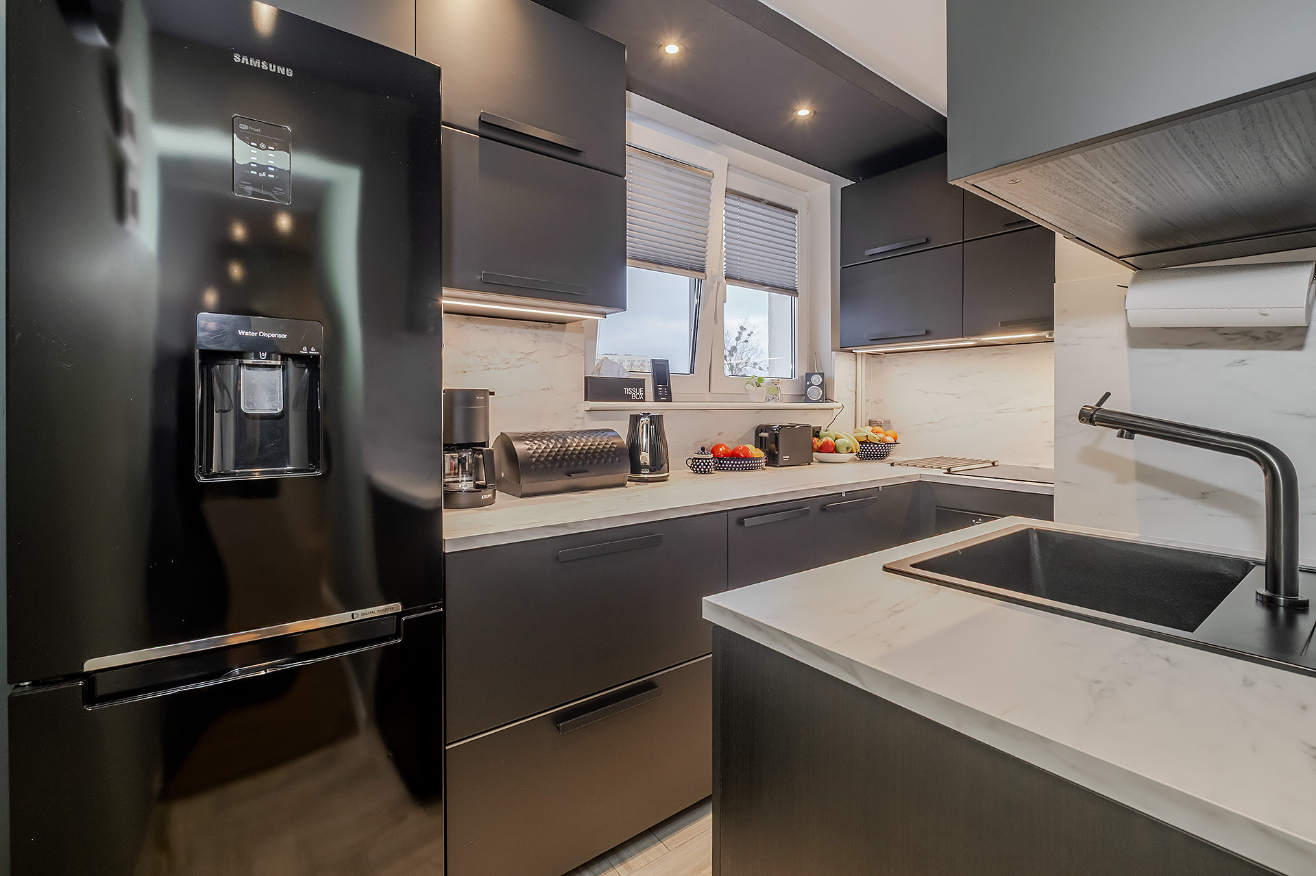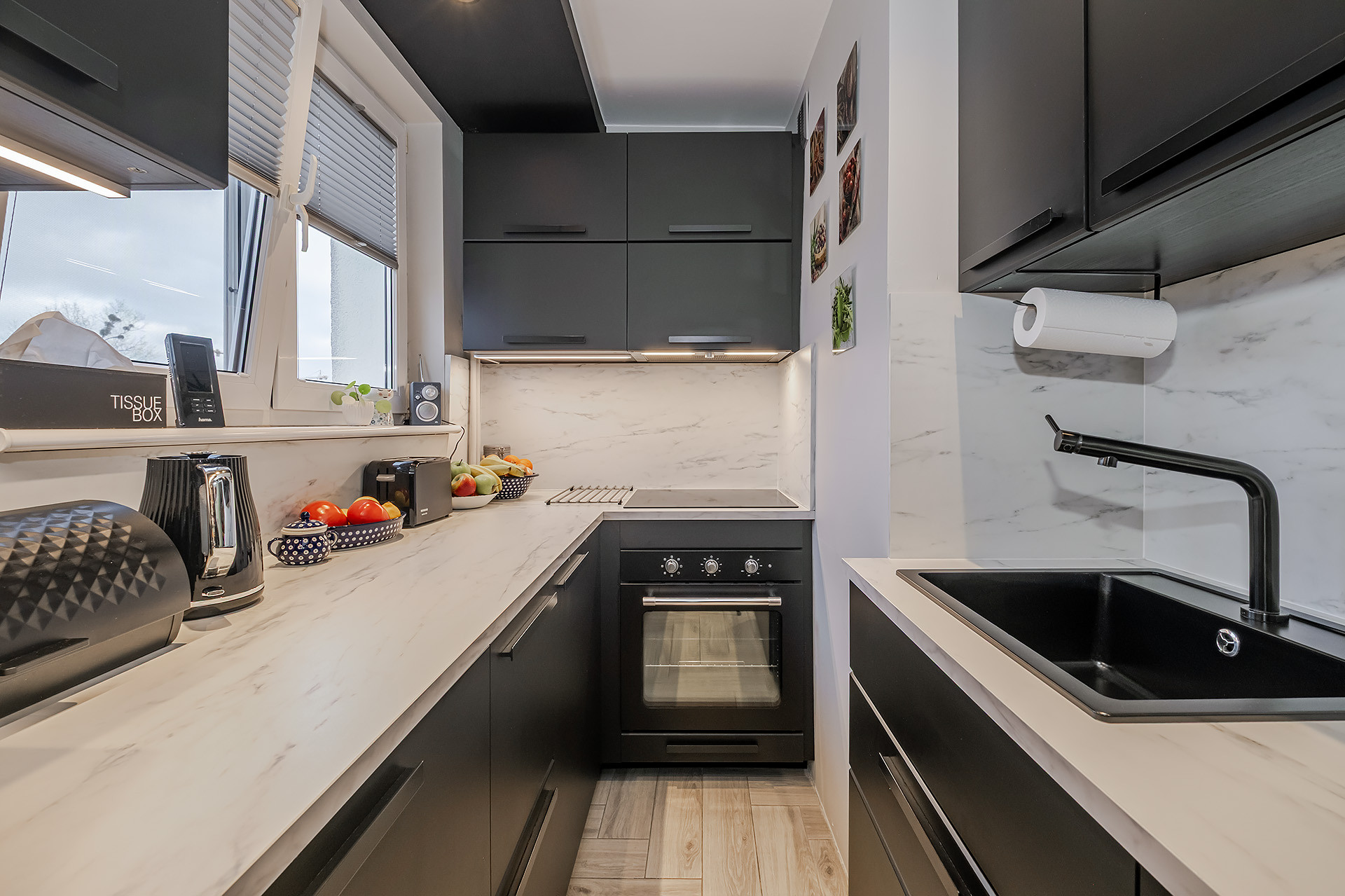 – Oddzielnej, wyposażonej w niezbędne sprzęty AGD Kuchni z dużym oknem