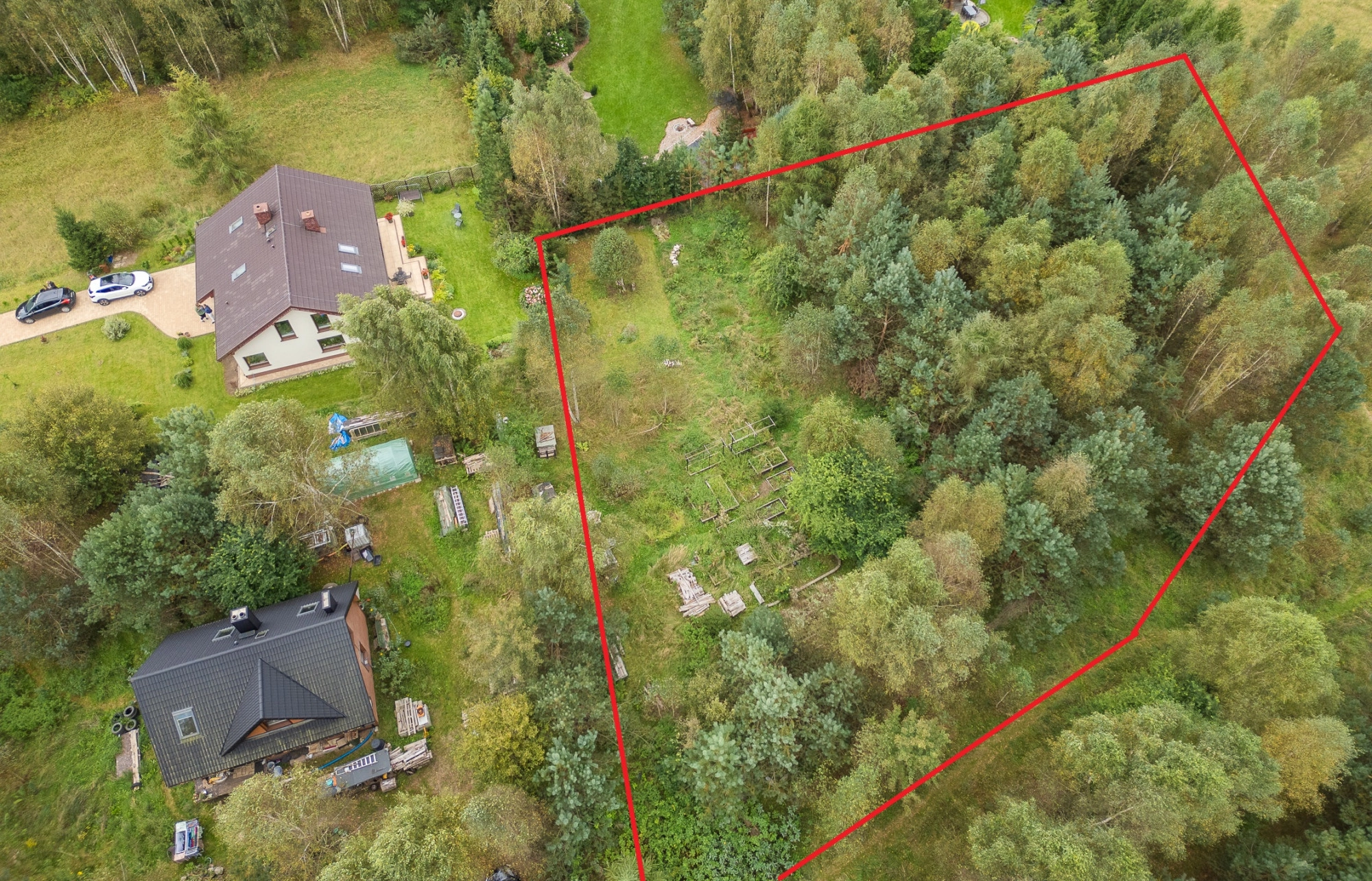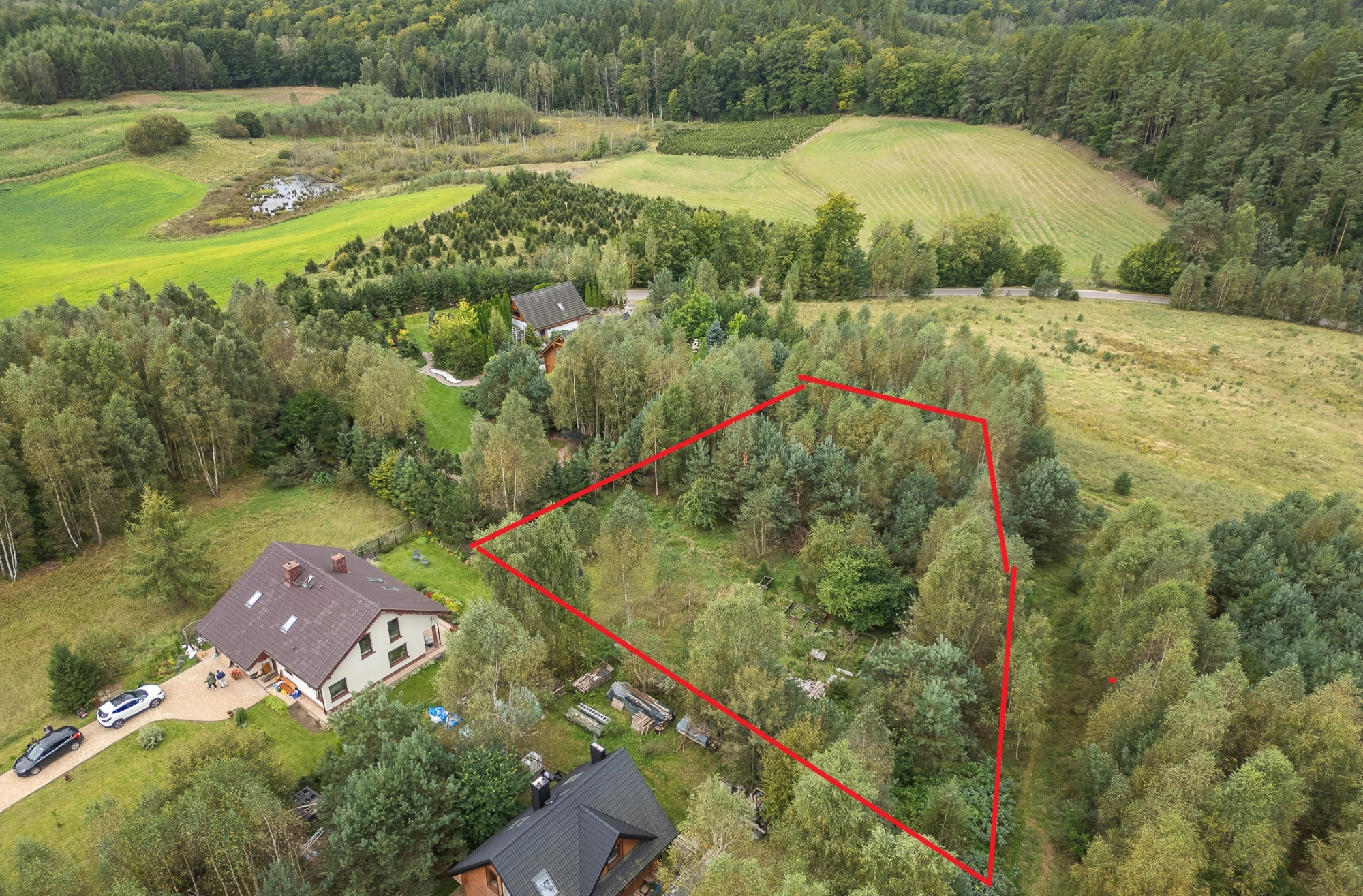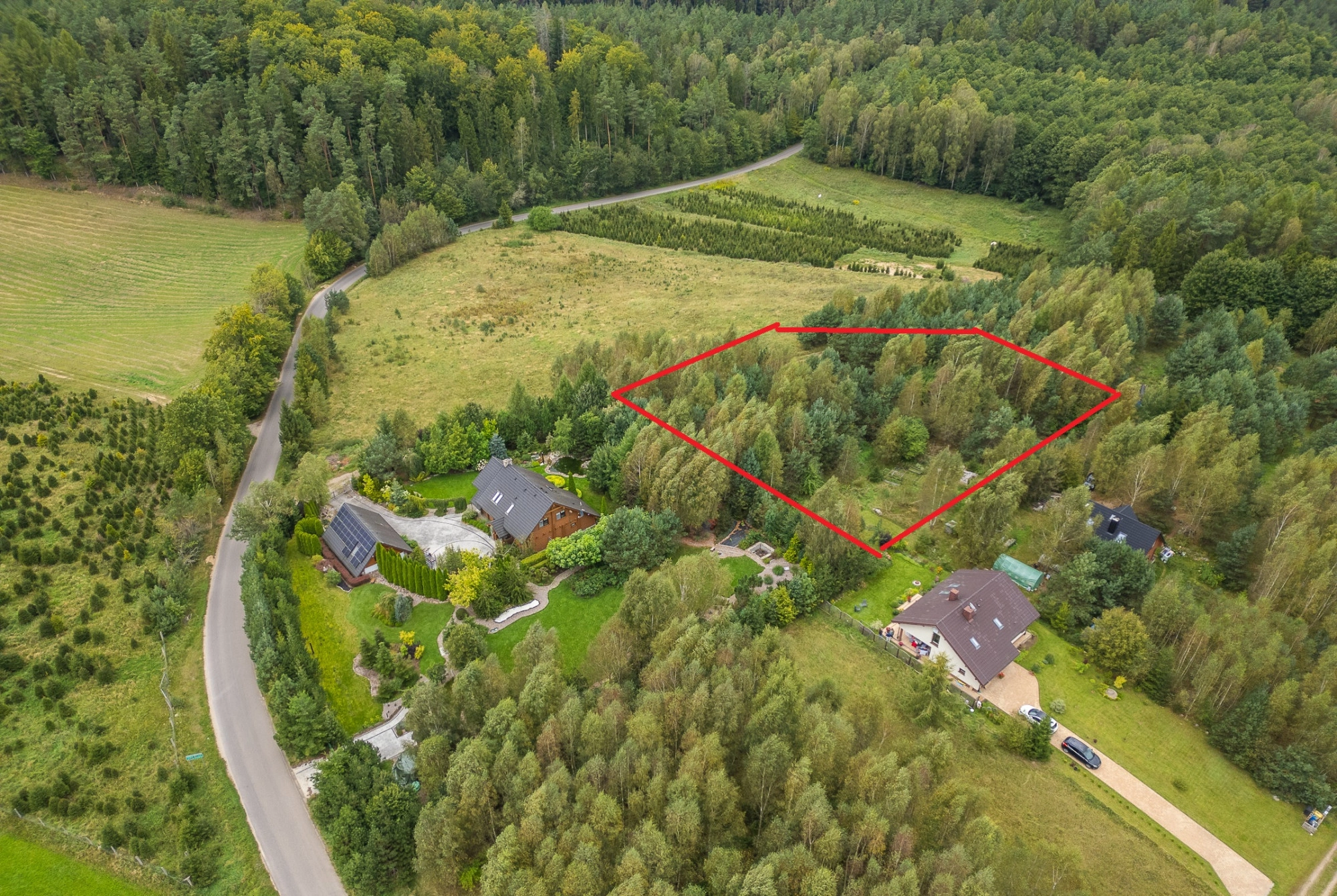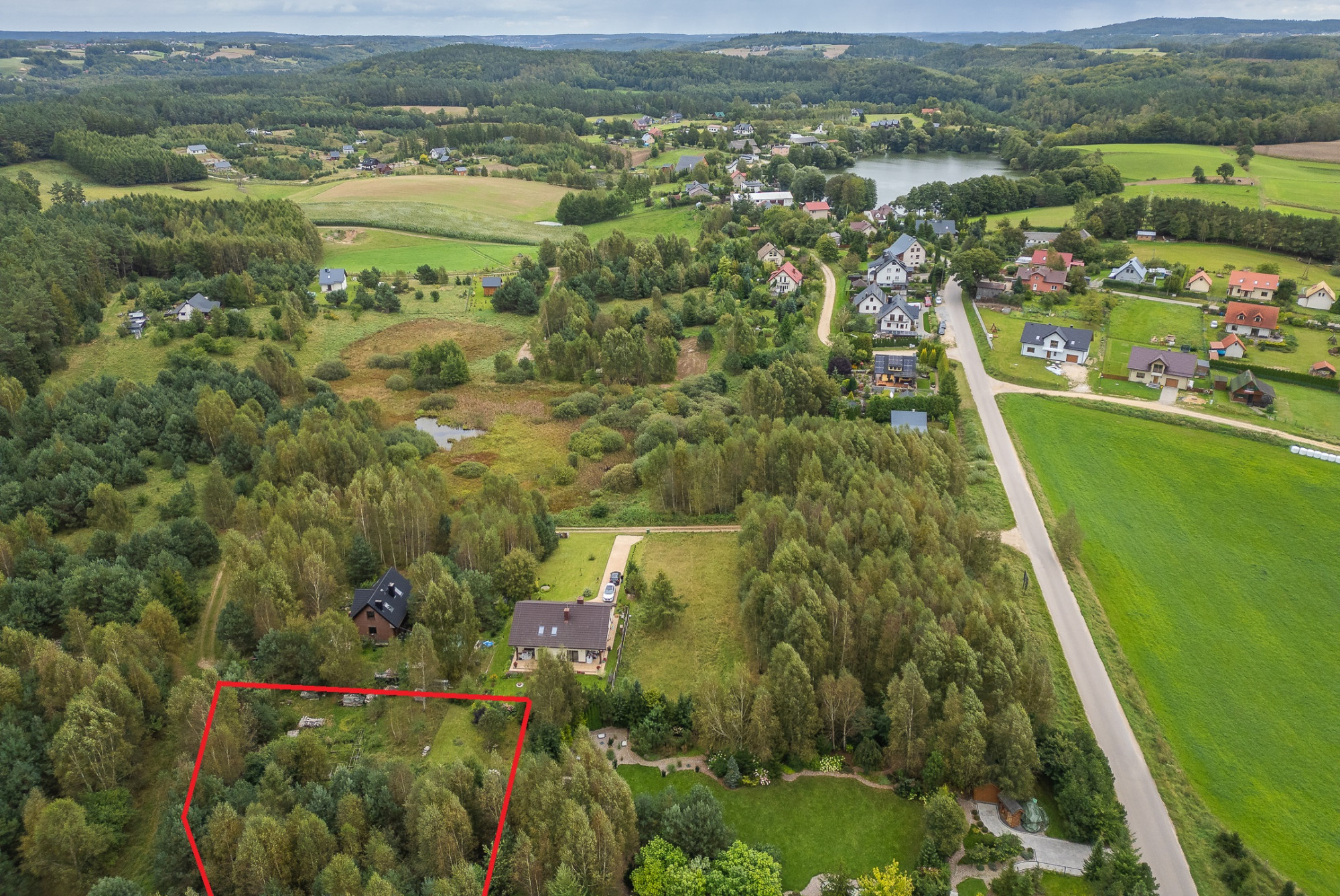 W sąsiedztwie działki zabudowania jednorodzinne oraz przepiękne lasy na obszarze Natura 2000. Nr działki 40/47
