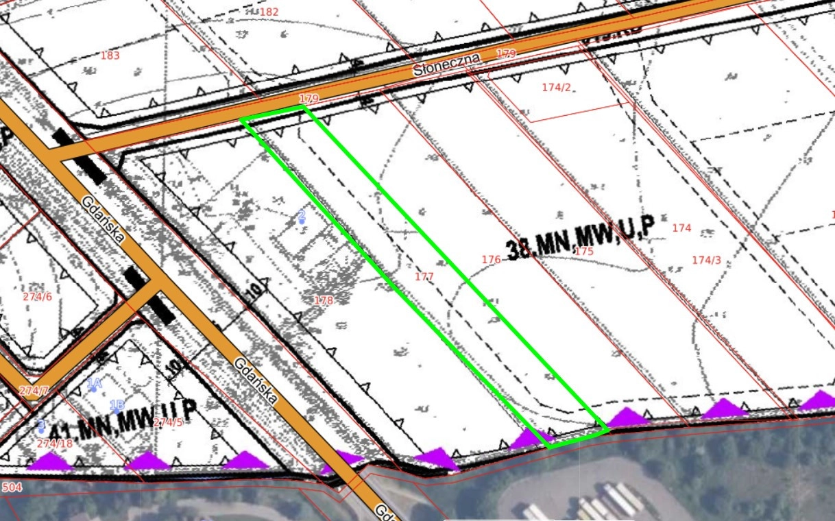 Działka o powierzchni 4200 m.kw. (0,42 hektara) objęta miejscowym planem, który przewiduje na ten teren kilka możliwych funkcji: