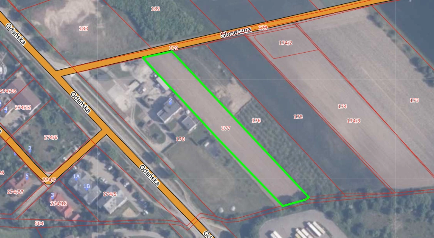 przez działkę przebiega częściowo sieć kanalizacji sanitarnej. Przy działce, w drodze gminnej wodociąg oraz sieć gazowa. Sieć energetyczna w ul. Gdańskiej.