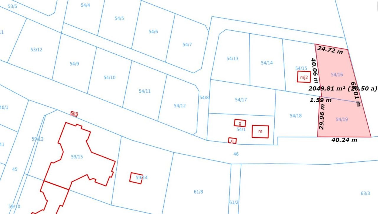 O powierzchni 2050 m2 na lekkim wzniesieniu, przy drodze, niezabudowana, zgodnie z ustaleniami miejscowego planu zagospodarowania przestrzennego zatwierdzonego uchwałą znajduję się na obszarze oznaczonym na planie jako zabudowa mieszkaniowo usługowa.