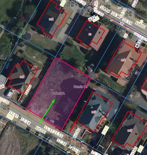 – kąt położenia granic działki w stosunku do pasa drogowego: 80-90˚,