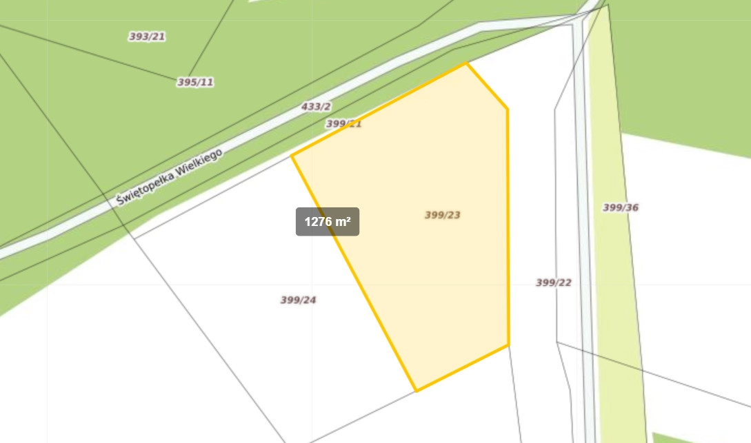 Płaska działka o kształcie regularnym. nr ew. 399/23 – 1275 m2