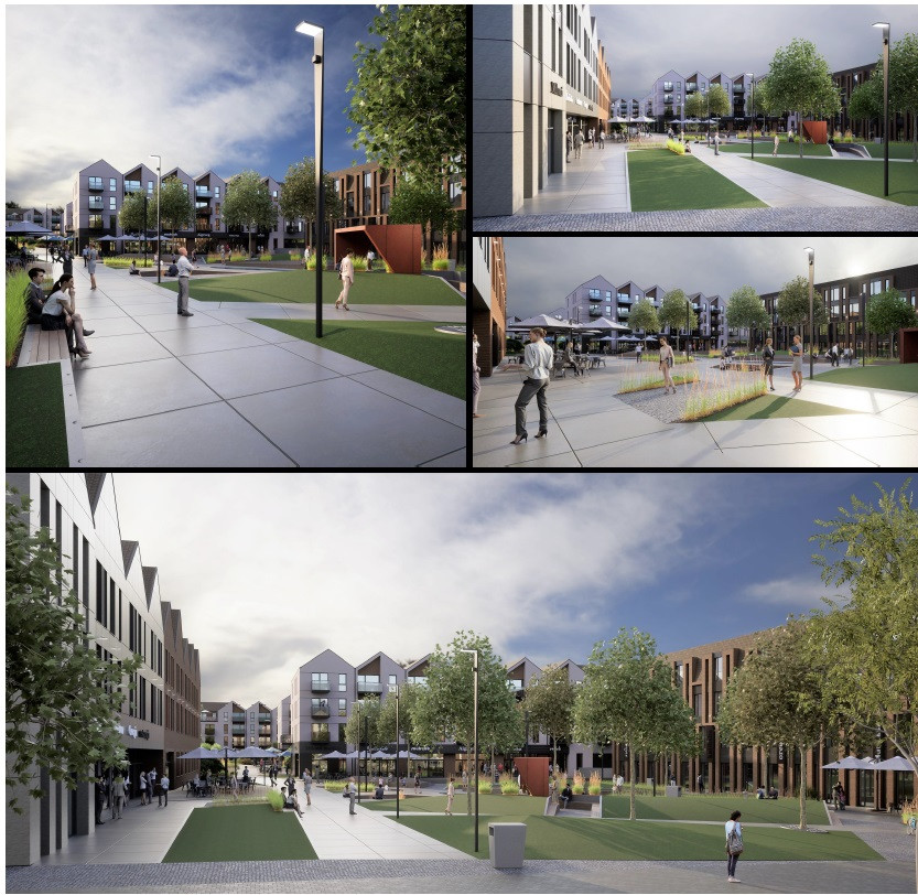 Wśród budynków mieszkalnych znajdziemy tu niewysokie, 3-4 piętrowe budynki wielorodzinne oraz 2-3 kondygnacyjne budynki jednorodzinne w zabudowie bliźniaczej lub szeregowej. Ich największym atutem jest piękny widok rozpościerający się zza okien. Od północnej i wschodniej strony podziwiać można rozległe pola uprawne, a od południowej i zachodniej miasto z wyłaniającą się spośród budynków katedrą. Przyszli mieszkańcy mają zapewniony dostęp do własnego ogródka, tarasu lub balkonu. Architektura całej dzielnicy jest spójna i harmonijna, natomiast poszczególne projekty budynków łączą ze sobą nowoczesną formę z tradycyjnymi materiałami wykończeniowymi, nawiązującymi do historycznej zabudowy Pelplina. Wzdłuż ulic ciągną się chodniki, przy których znajdują się małe skwerki idealne do odpoczynku podczas spaceru. Nie brak również większych przestrzeni rekreacyjnych. Do dyspozycji mieszkańców będzie boisko wielofunkcyjne, skatepark, pole do mini golfa, kilka siłowni terenowych oraz kameralne parki pełniące między innymi funkcje zieleni izolacyjnej. Inwestycja zaprojektowana jest tak, że można realizować ją etapami, nawet przez kilka/kilkanaście lat.