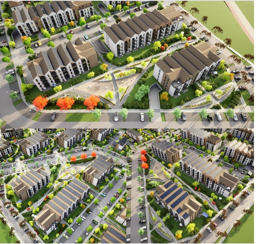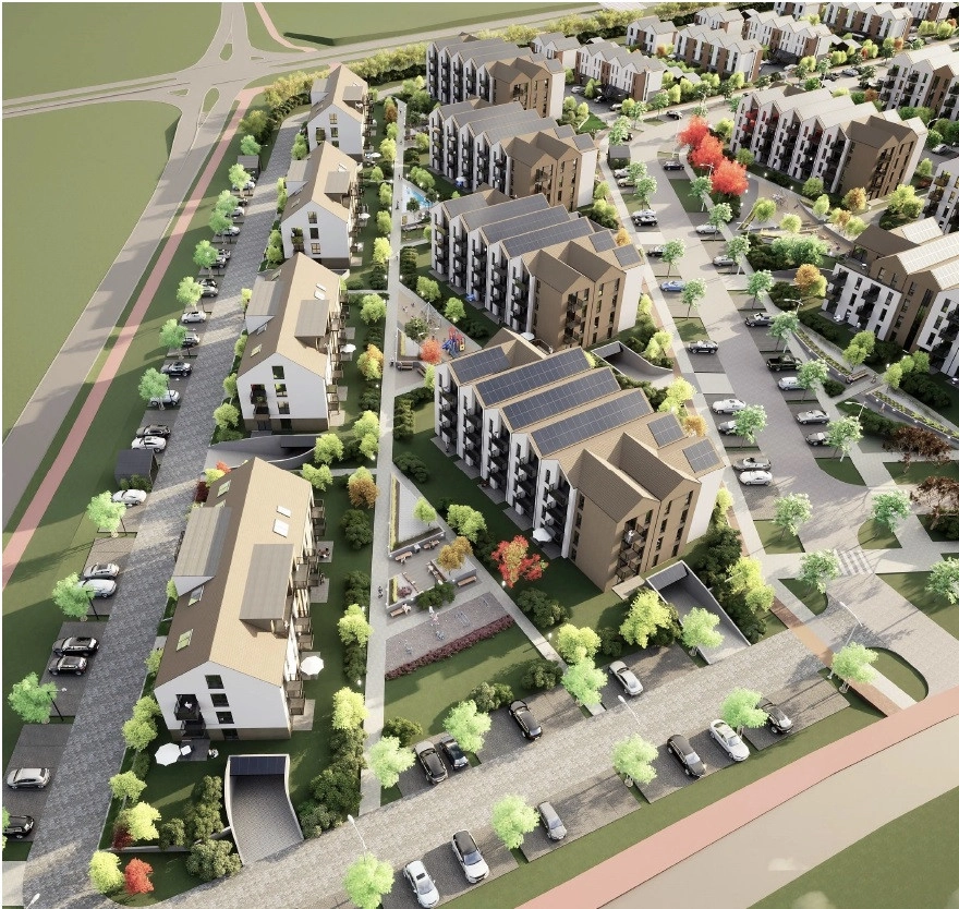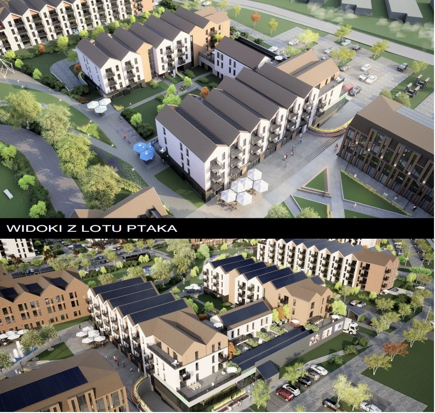 NIERUCHOMOŚĆ: przedmiotem sprzedaży jest działka budowlana (mieszkaniowo-usługowa) o powierzchni ponad 25 ha, objęta MPZP (UCHWAŁA NR XLIV/381/22 RADY MIEJSKIEJ W PELPLINIE z dnia 24 czerwca 2022 r.). Działka sprzedawana jest wraz z kompletnym, bardzo szczegółowym projektem architektonicznym. To, co wyróżnia to miejsce, to dbałość o ekologię. Zwarte bryły projektowanych obiektów zmniejszają straty ciepła. Wszędzie, gdzie to możliwe, budynki zaprojektowane są w taki sposób, aby maksymalnie wykorzystać energię słoneczną. Liczne panele fotowoltaiczne oraz projektowane pompy ciepła minimalizują koszty eksploatacji poszczególnych jednostek mieszkalnych i usługowych, a zastąpienie tradycyjnej więźby dachowej kratownicami ze zbijanych desek ogranicza zużycie drewna. Przewidziano również zewnętrzne i wewnętrzne stacje szybkiego ładowania samochodów elektrycznych. Z myślą o rowerzystach projektuje się trzy ścieżki rowerowe przecinające dzielnicę, połączone z drogami istniejącymi na sąsiednich terenach oraz