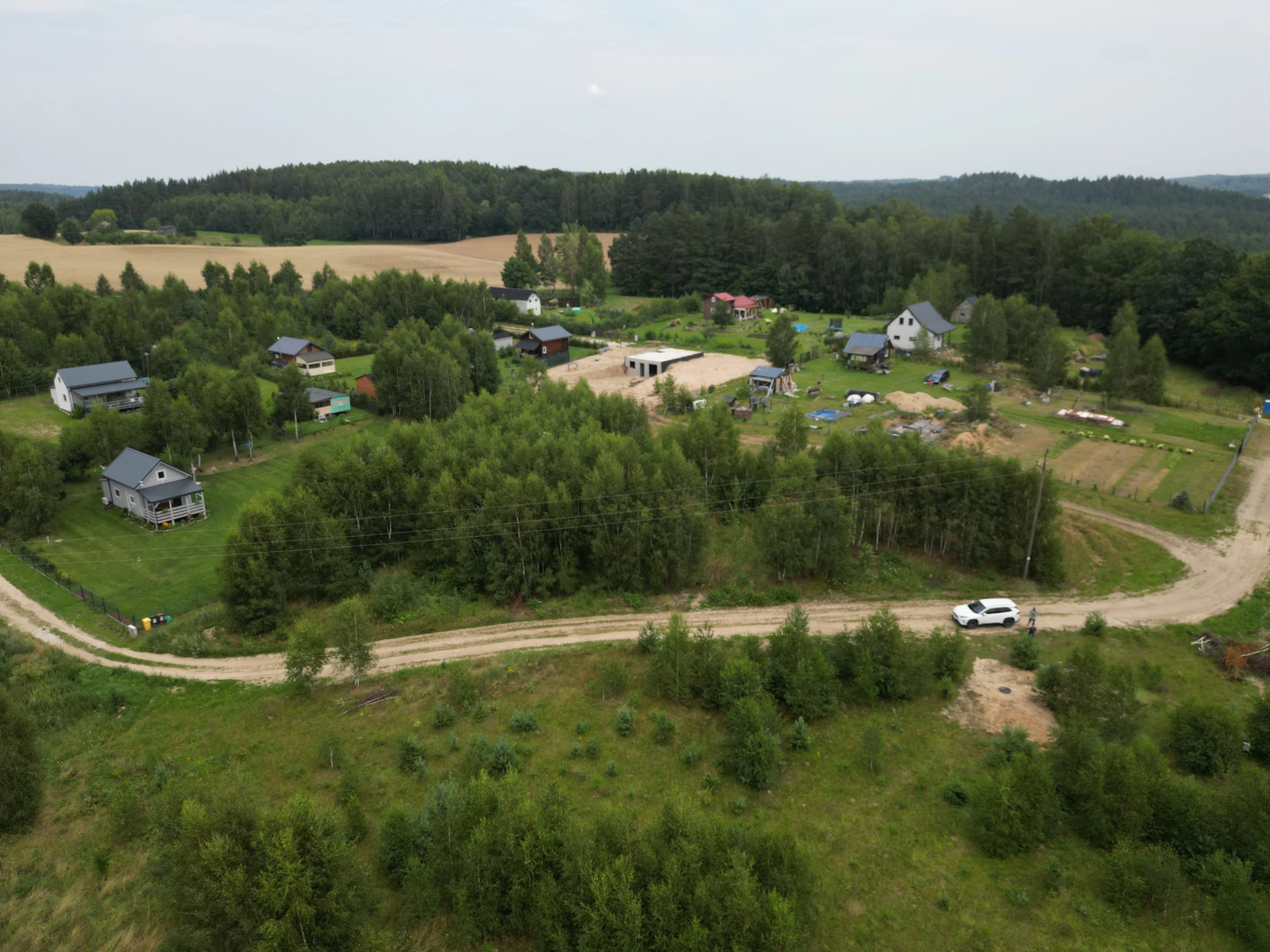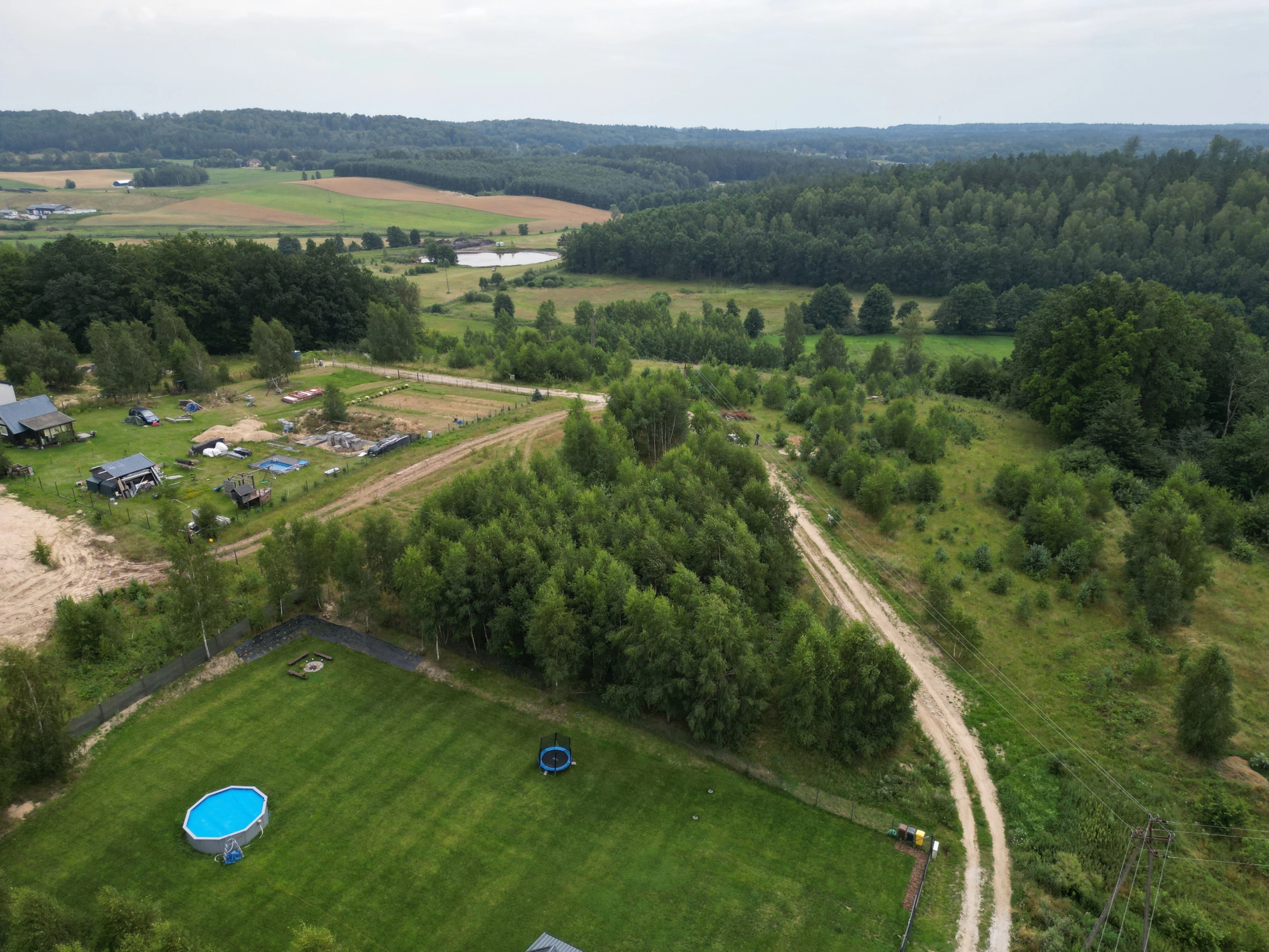 W drodze przy granicy działki media takie jak PRĄD, Woda z własnej studni.