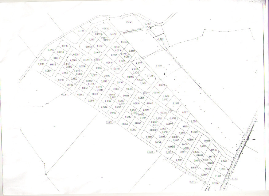Cały obszar został podzielony na 45 działek ewidencyjnych.