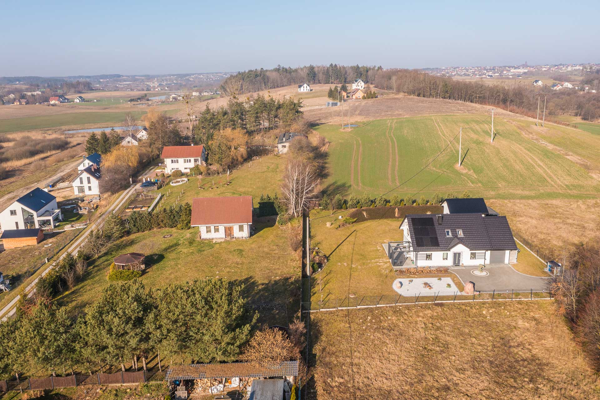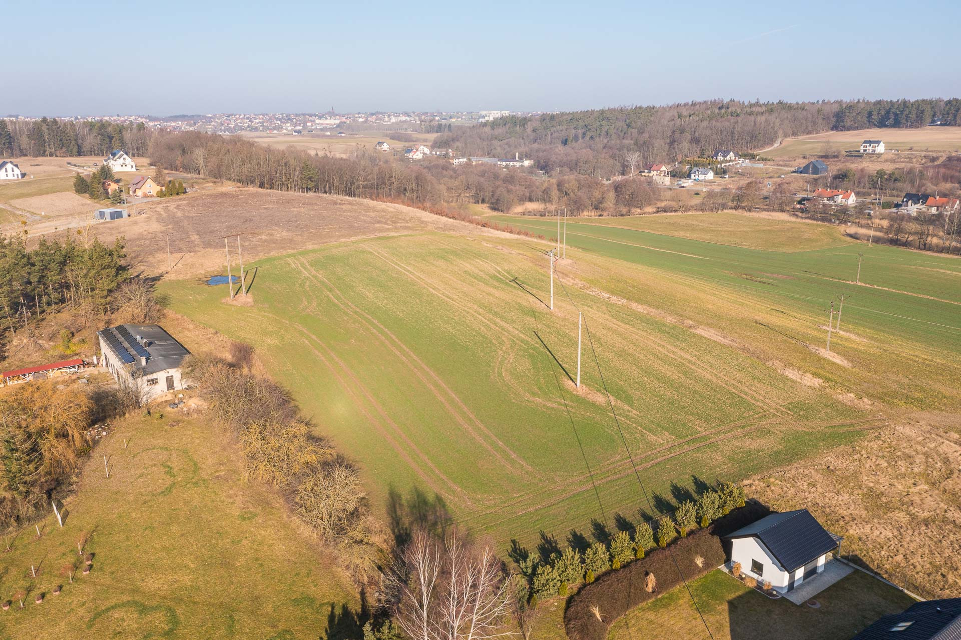 Istnieje możliwość podziału działek na 18 działek budowlanych (dysponujemy wstępną koncepcją takiego podziału) lub budowy na nich farmy fotowoltaicznej.