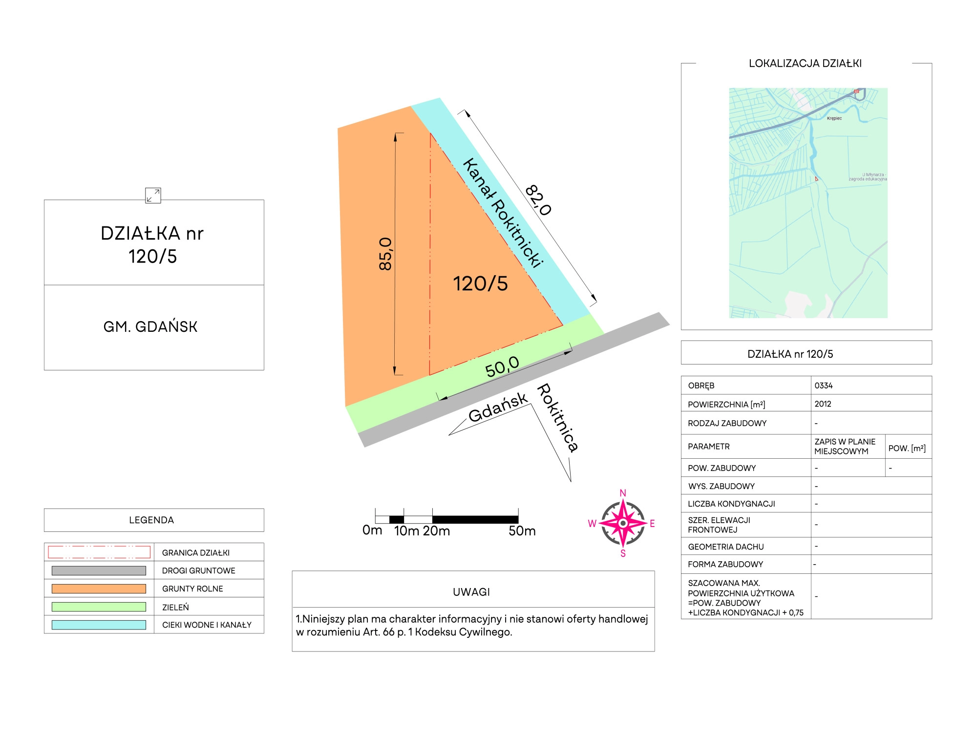 Działka znajduje się zaledwie 15 minut od centrum Gdańska, co zapewnia szybki dojazd do miasta, idealna dla osób szukających spokoju i bliskości miejskich udogodnień.