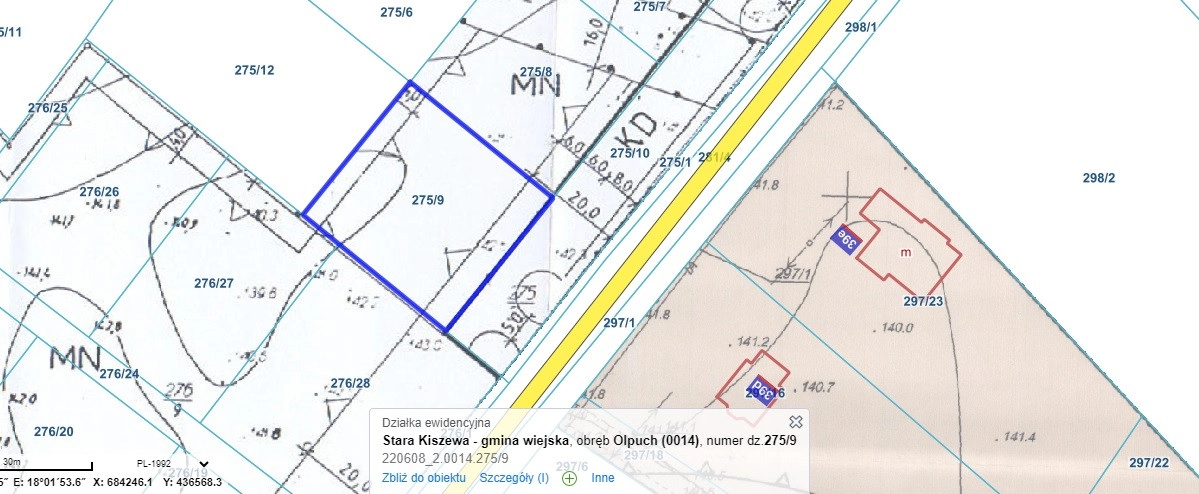 – działka nr 275/7 pow. 1214m2 cena 160 000 zł