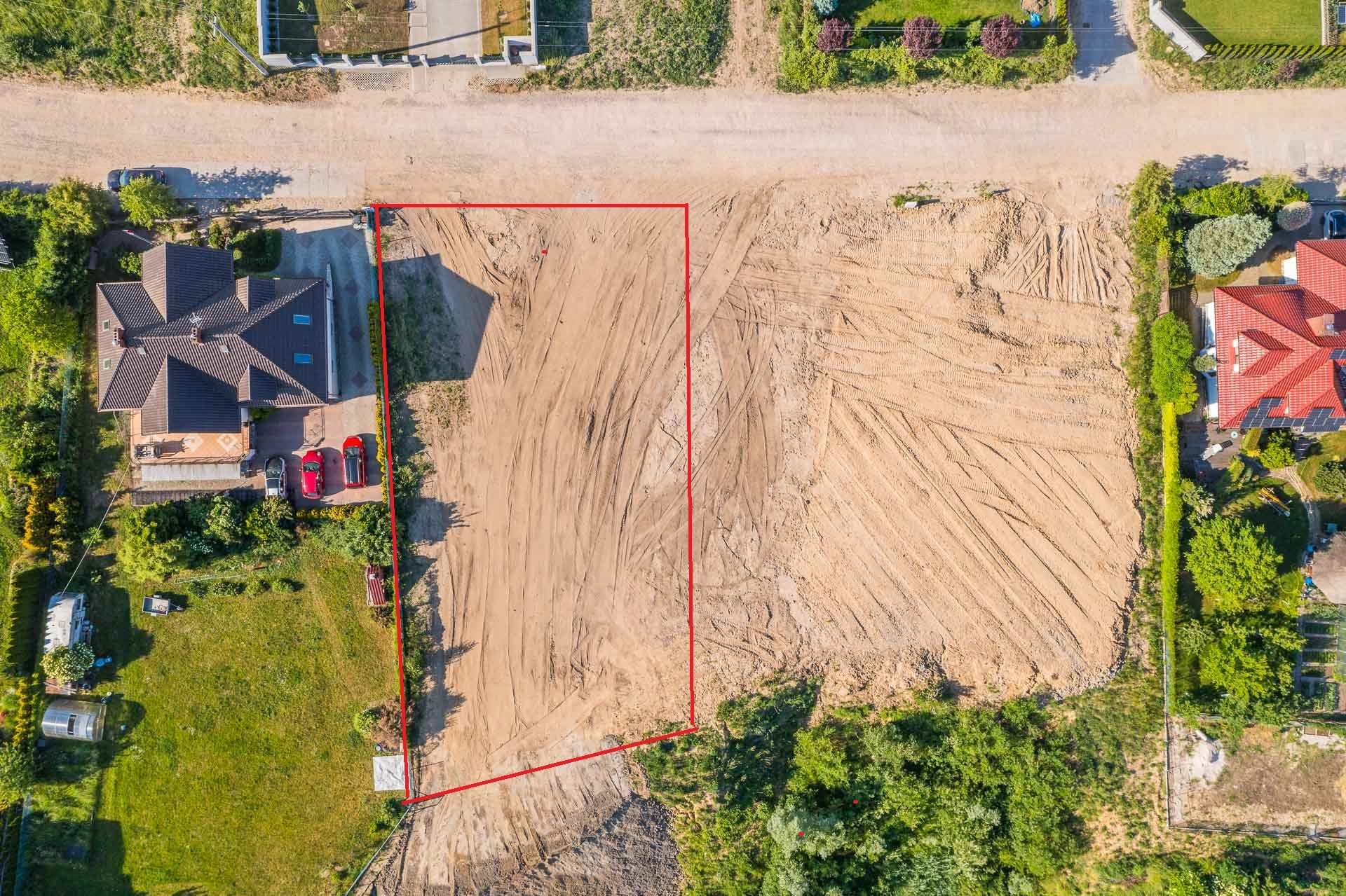 Działka o powierzchni 990m2, kształt prostokątny o wymiarach 23m wzdłuż ulicy oraz ok. 50m w głąb działki.