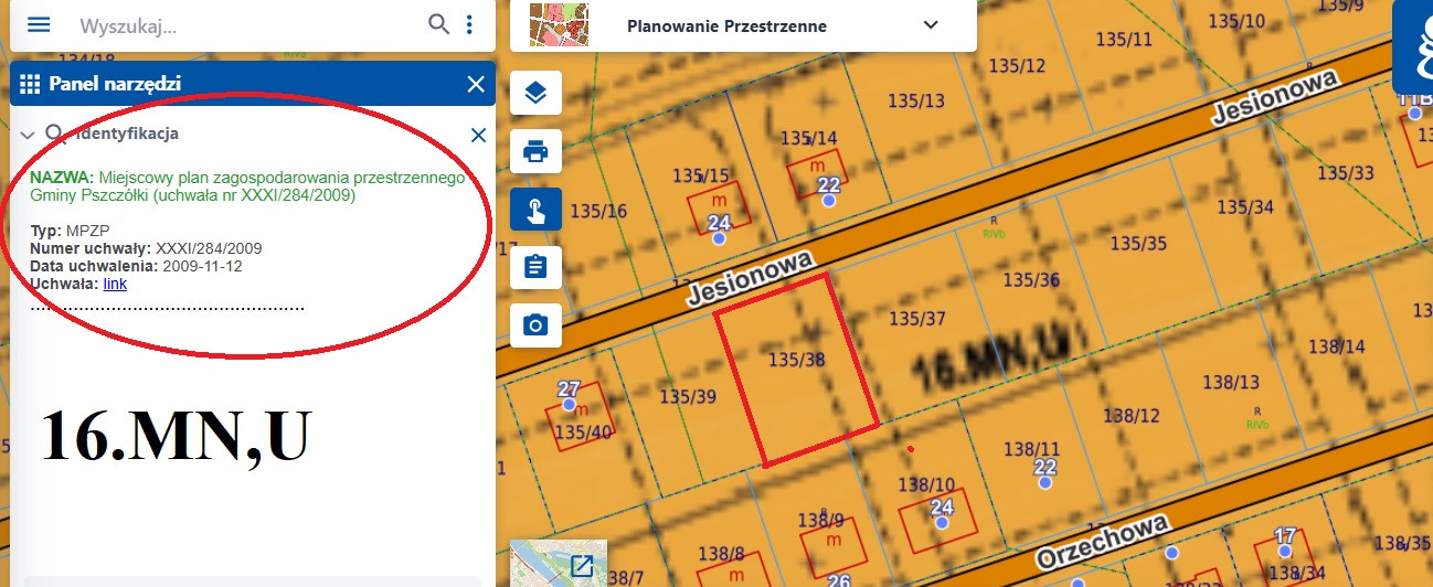 Działka oznaczona symbolem 16MN,U – tereny zabudowy mieszkaniowej jednorodzinnej i usługowej