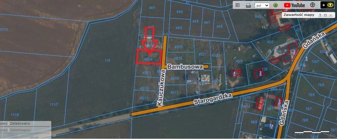 Działka położona jest we wsi Kaczki w Trąbkach Wielkich. W odległości ok. 1 km od Kaczek znajduje się: szkoła, przedszkole, ośrodek zdrowia, poczta, posterunek Policji, stacja benzynowa oraz markety.