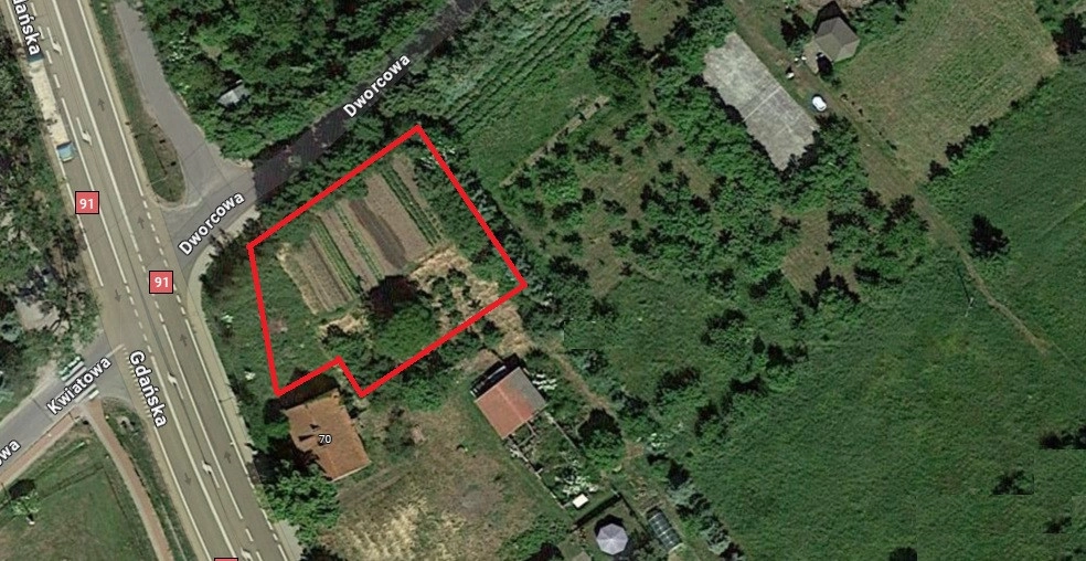 Działka położona jest w miejscowości Różyny, skąd blisko dojedziemy do Gdańska oraz Pruszcza Gdańskiego.  Położenie bezpośrednio na skrzyżowaniu ulicy Gdańskiej (droga krajowa 91) oraz Dworcowej skąd bezpośrednio dojdziemy do dworca PKP.