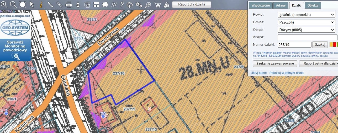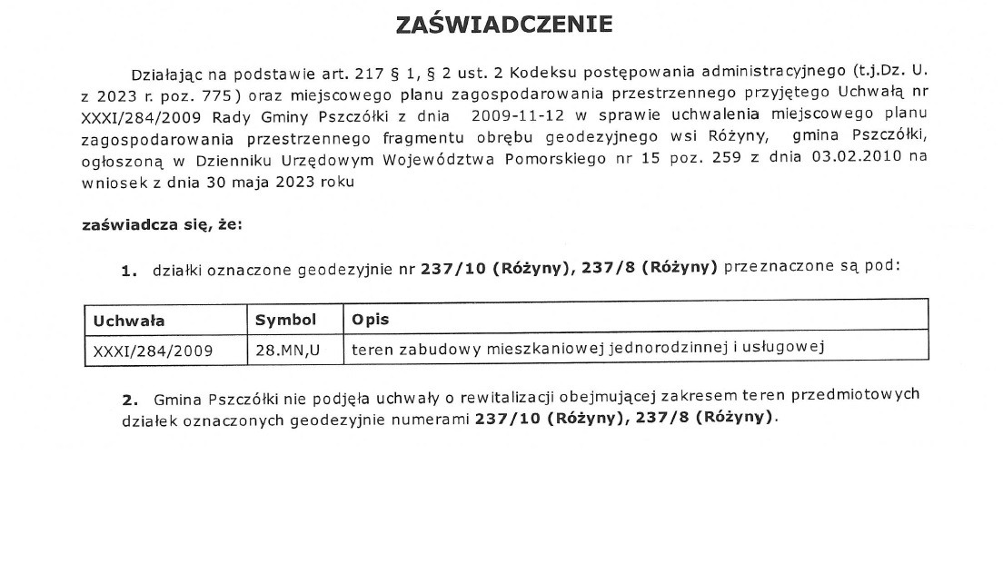 DZIAŁKA o pow. 1160 m2 bezpośrednio przy ul. GDAŃSKIEJ w RÓŻYNACH, OBJĘTA MPZP – MIESZKANIOWO – USŁUGOWA