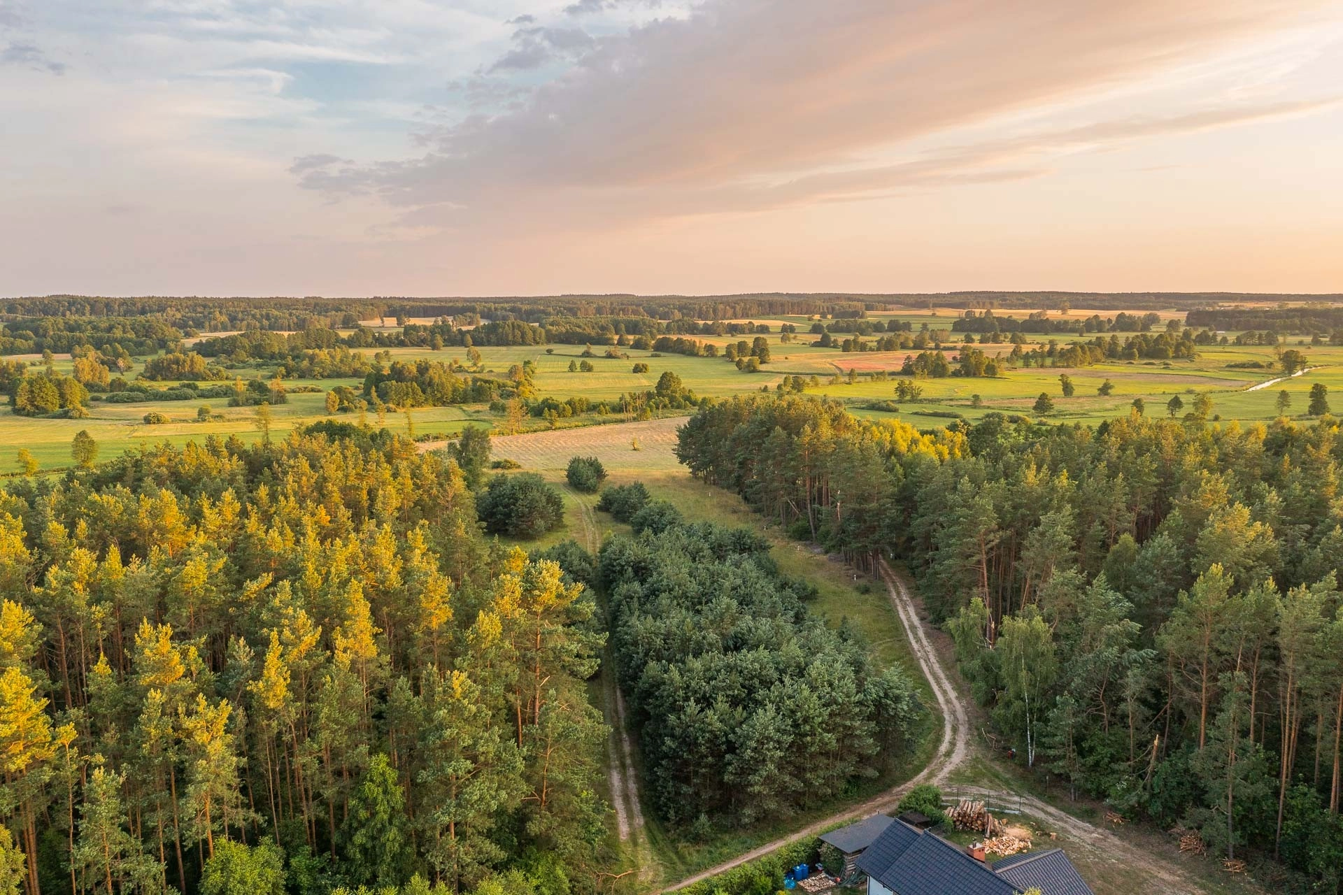 Teren zapewnia intymność i spokój ze względu na granice wyznaczone przez naturę (rzeka, las, łąka).