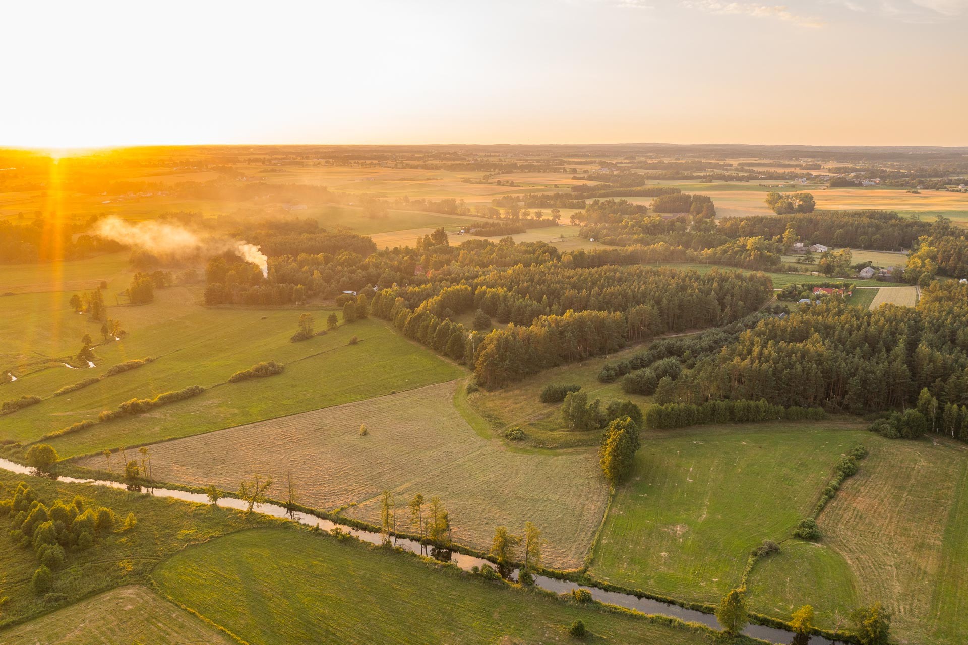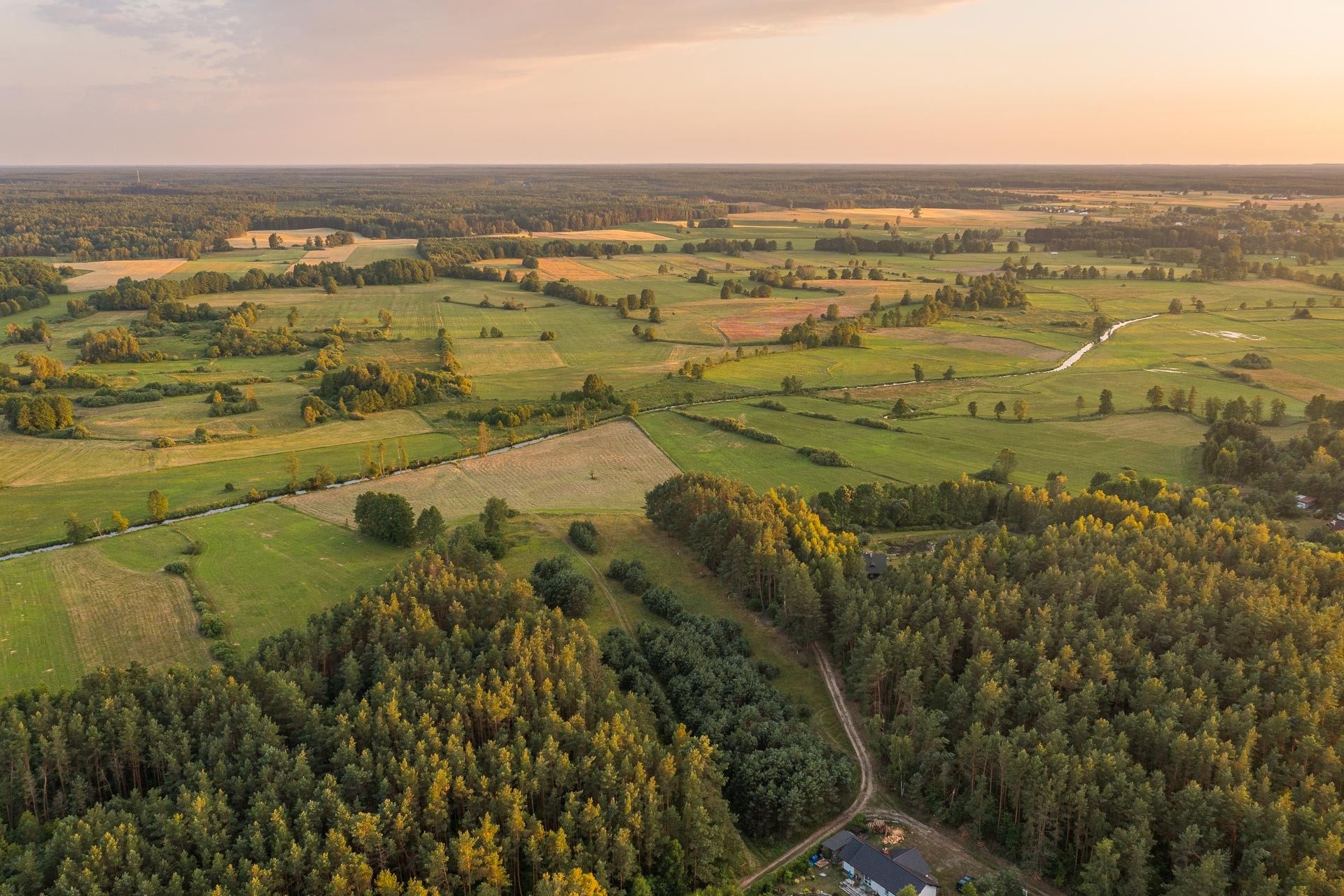 Teren zapewnia intymność i spokój ze względu na granice wyznaczone przez naturę (rzeka, las, łąka).