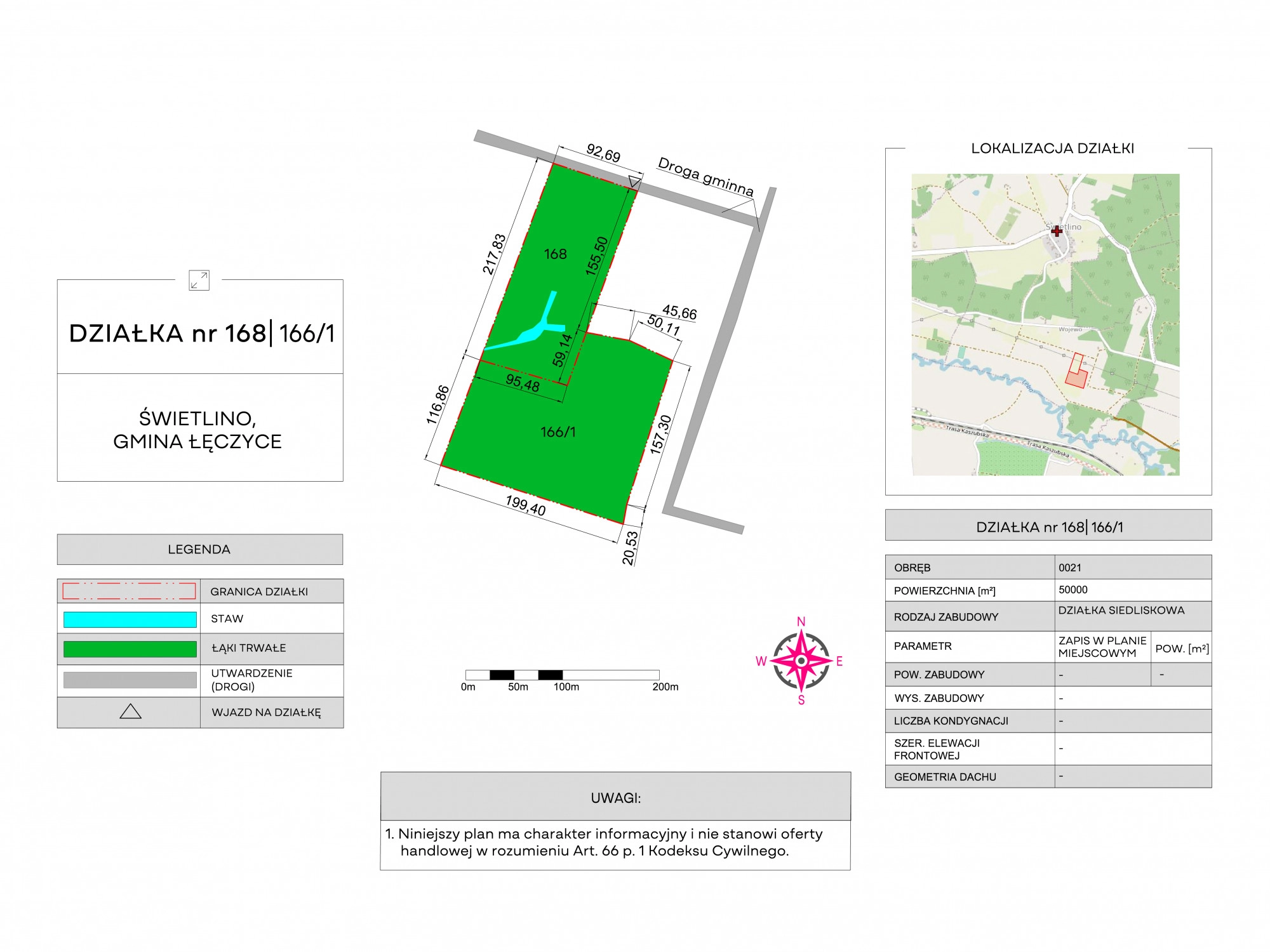 Przedmiotem sprzedaży są dwie działki  położone w Świetlinie gmina Łęczyce o numerze 1661 i 168  o łącznej  powierzchni 50000,0000 M2.