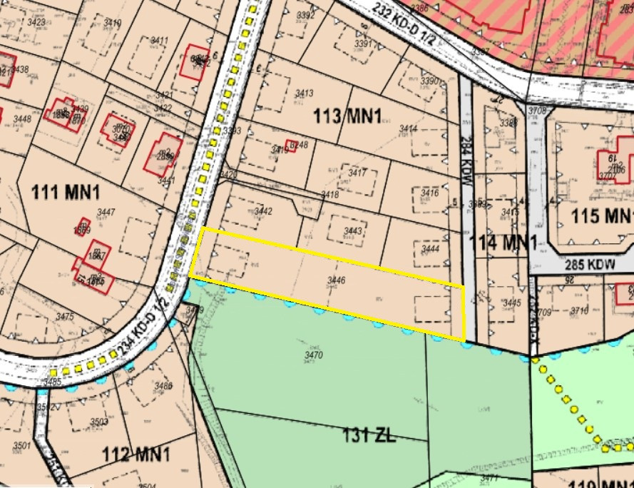 – Strefa MN1 zabudowa jednorodzinną wolnostojącą (do 2 lokali w budynku)