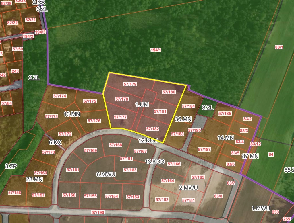 Przeznaczenie terenu w miejscowym planie (UM): tereny usług nieuciążliwych z dopuszczeniem zabudowy mieszkaniowej jednorodzinnej wolnostojącej, dopuszcza się lokalizację zabudowy usługowej typu: budynki zamieszkania zbiorowego takie jak dom seniora, dom rencisty, hotel, motel, pensjonat, dom wypoczynkowy, dom wycieczkowy; usługi typu: gastronomia, handel z wykluczeniem obiektów handlowych o pow. sprzedaży powyżej 2000 m², usługi służące odnowie biologicznej; dopuszcza się zabudowę mieszkaniową jednorodzinną wolnostojącą, dopuszcza się wolnostojące parterowe budynki gospodarcze, garaże, miejsca postojowe ogólnodostępne; dopuszcza się budynki usługowe lub mieszkalne, nie dopuszcza się budynków mieszkalno-usługowych