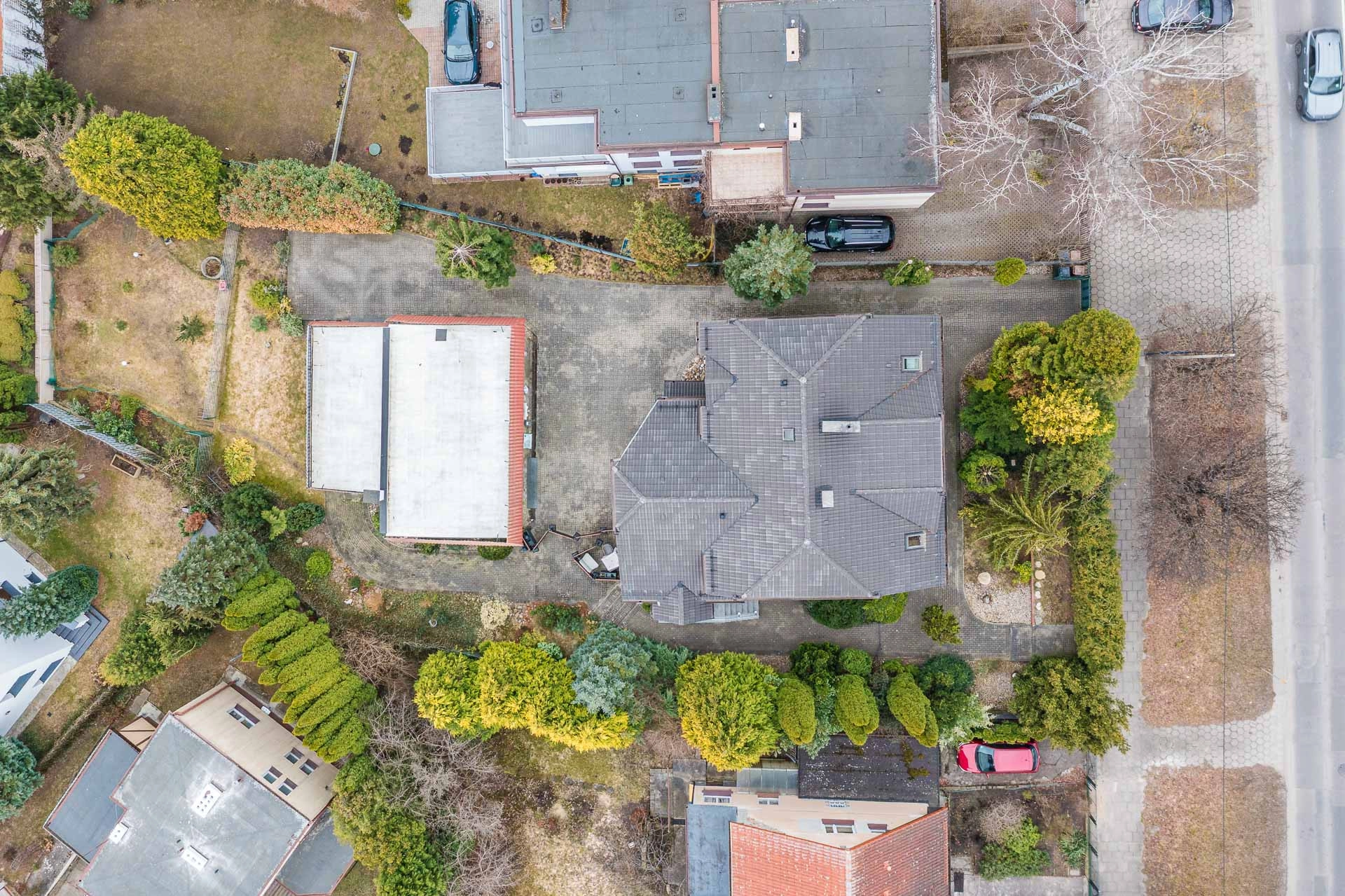 Obecnie działka zabudowana domem i garażem.