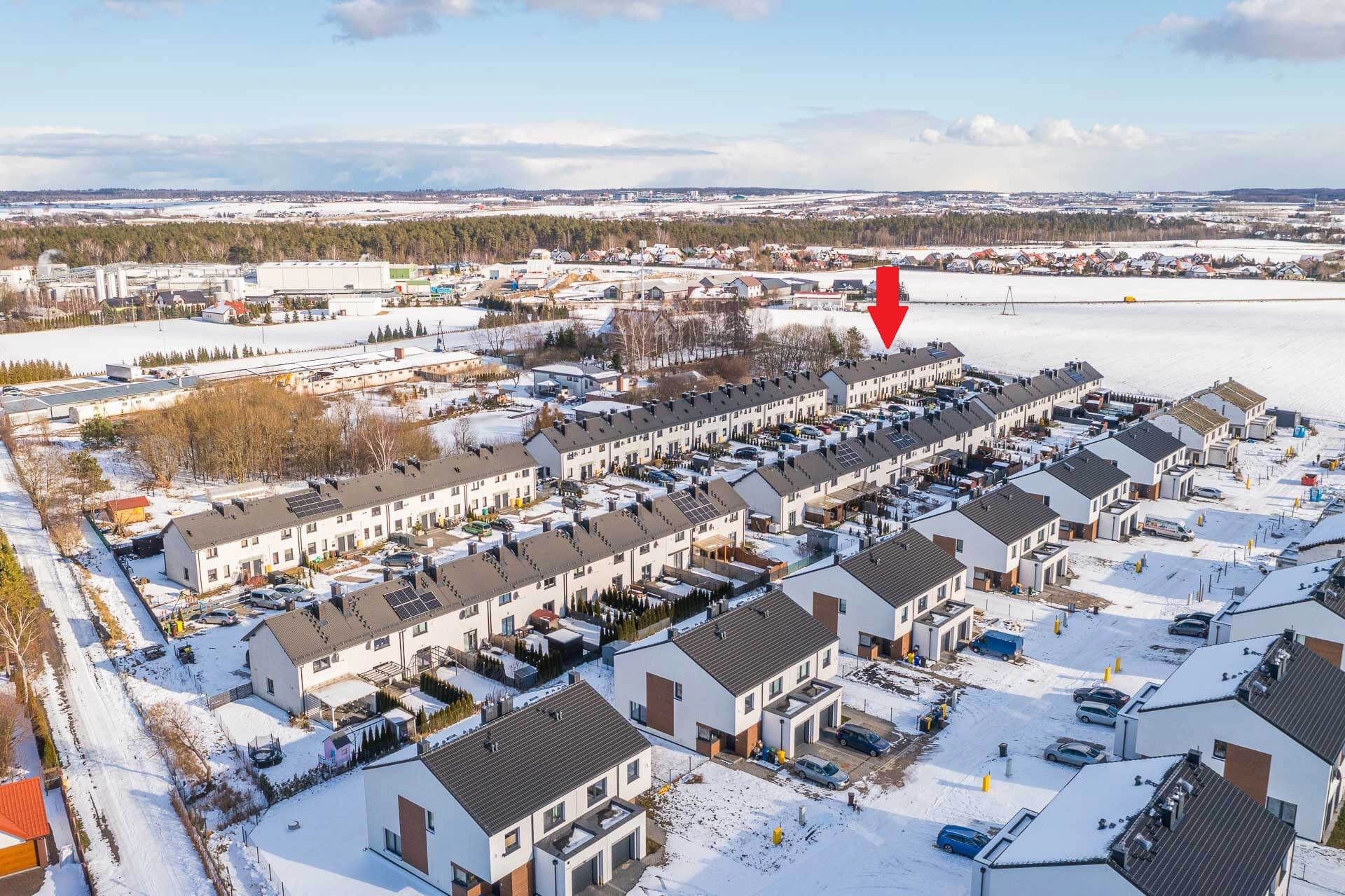 Sąsiedztwo działki jest spokojne: domy jednorodzinne i szeregowe, pola uprawne, stadnina koni.