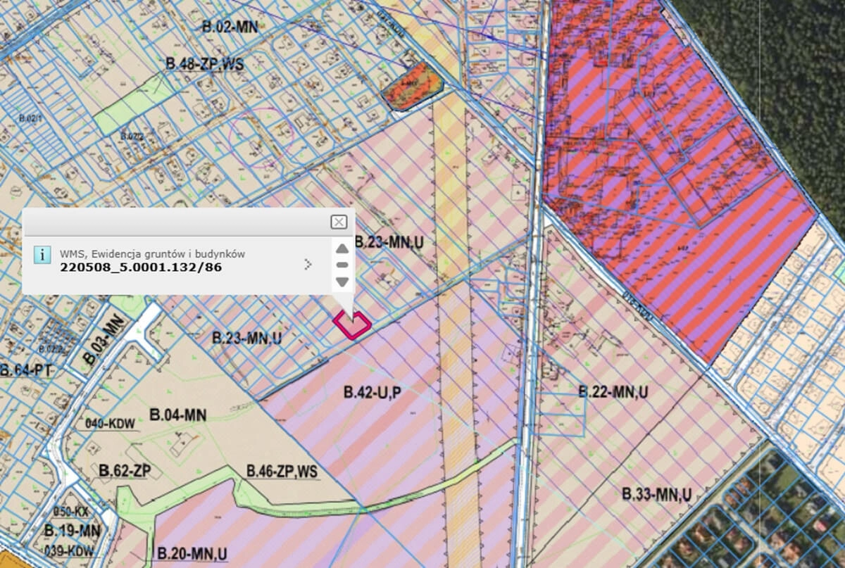Teren objęty jest miejscowym planem zagospodarowania przestrzennego: Uchwala Nr XLVII/566/2017 z dnia 12 grudnia 2017 r. – B-23.MN,U – tereny zabudowy mieszkaniowej jednorodzinnej i usługowej.