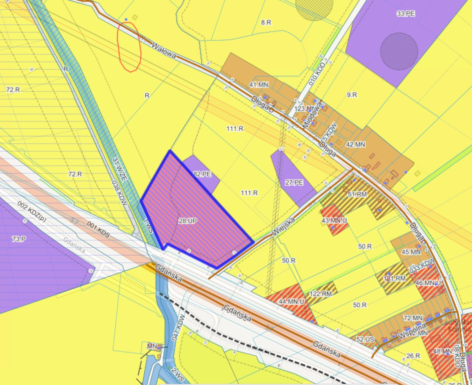 działka Przemysłowa/ S7/ MPZP/ droga asfalt/ Cedry