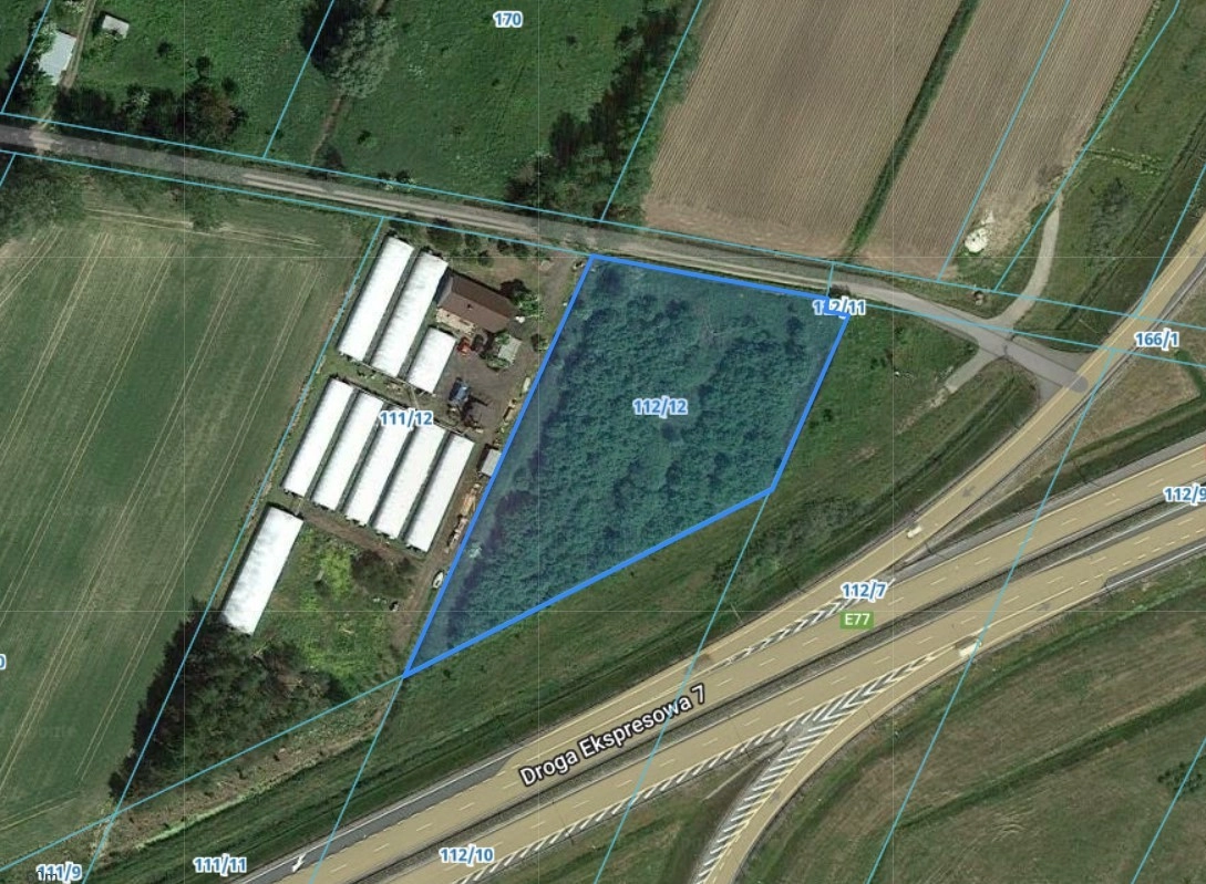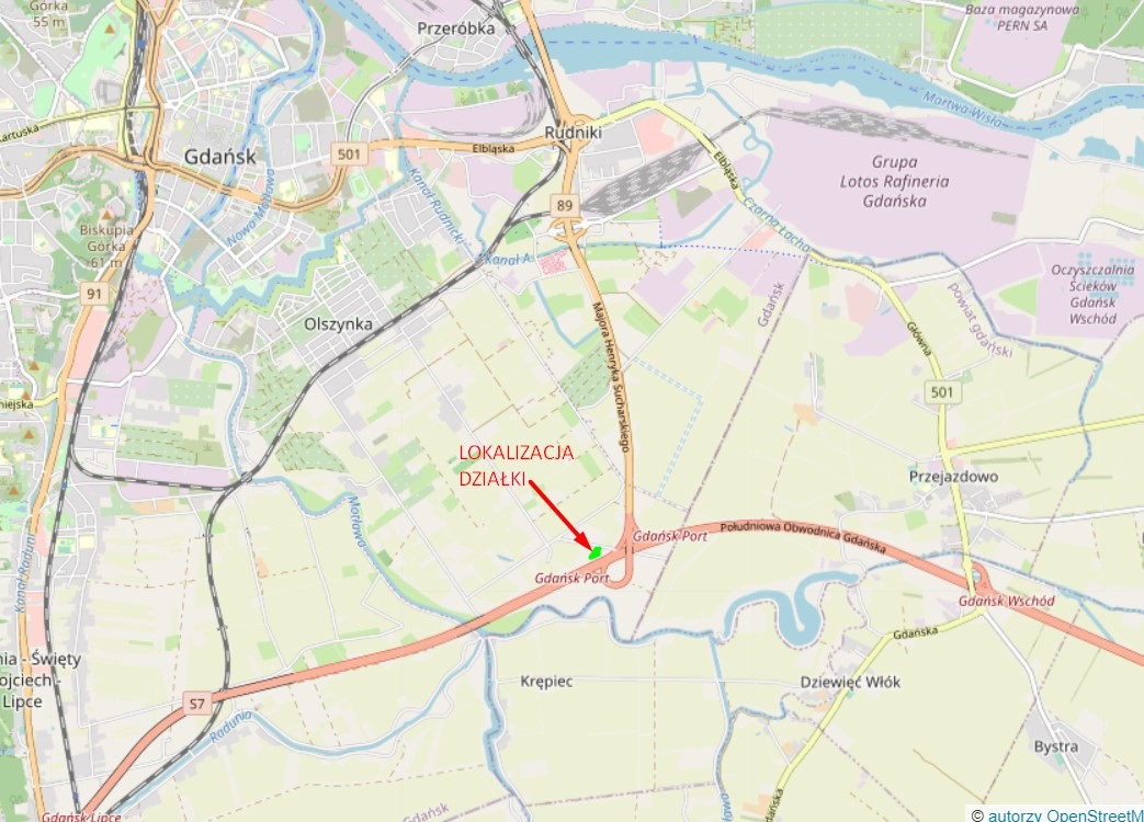 Działka położona przy płytowej ulicy, obok Trasy ekspresowej S7 (Obwodnica Południowa Gdańska).