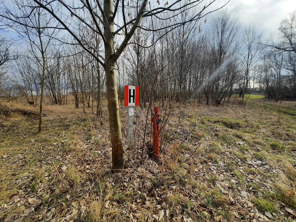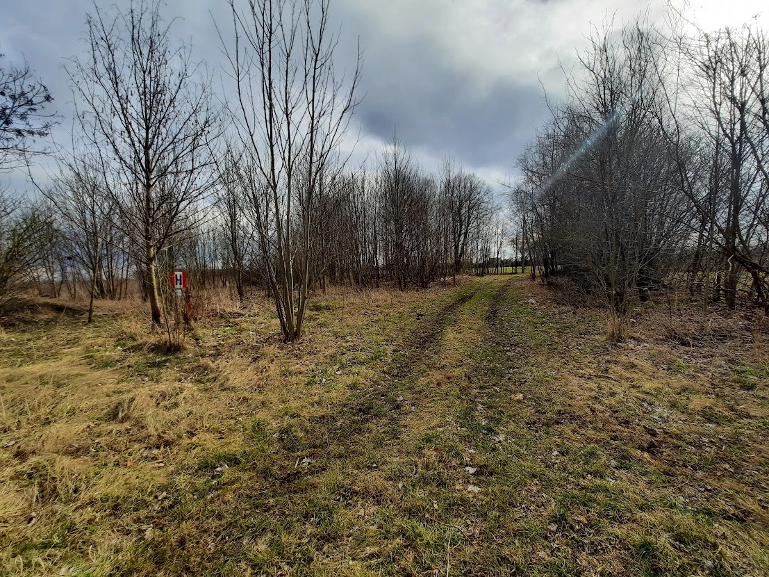 Na działce znajdują się pozostałości fundamentu budynku oraz słupek energetyczny bliżej narożnika.
